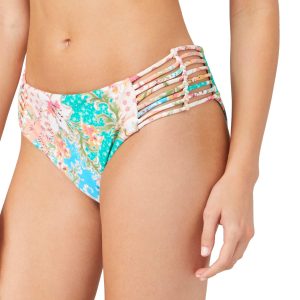 Introducing the Juniors Lua Floral Cheeky Swim Bottoms, crafted from a blend of polyester, polyamide, and elastane for a comfortable and flexible fit. These stylish swim bottoms feature a vibrant floral print, side slit detail, and a cheeky fit that adds a playful touch to your swimwear collection. Perfect for mixing and matching with your favorite tops, these bottoms combine fashion and functionality seamlessly, making them ideal for beach days and poolside lounging.