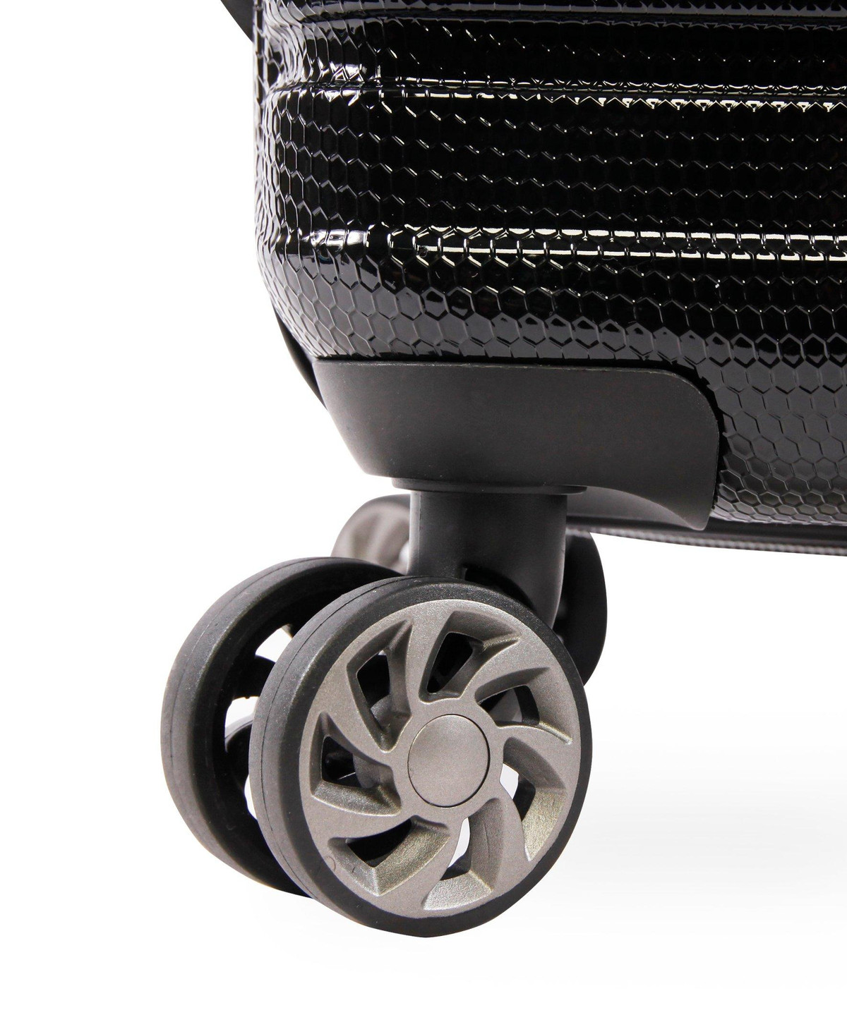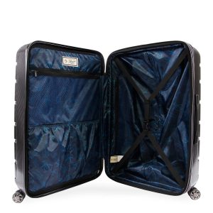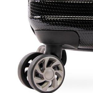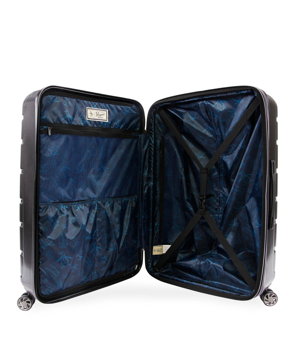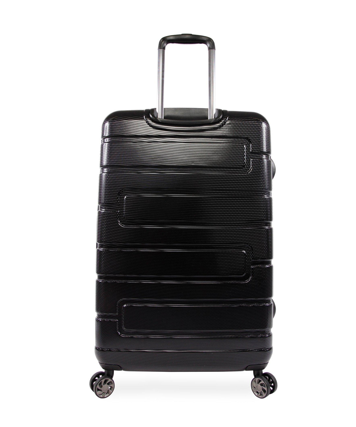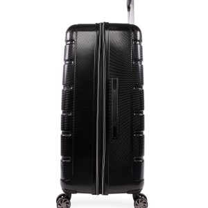 This hard side exterior creates a sophisticated yet fun design. The 29 crimson style luggage is constructed of lightweight and durable material with a rigid texture shell, a aluminum trolley handle, and double spinner wheels for easy transport. This carry-on expands to offer 25% more packing capacity and has a fully lined interior with shoe pockets, tie down straps, and a zippered pocket. Suitcase measures 29 in. x 18 in. x 13 in.