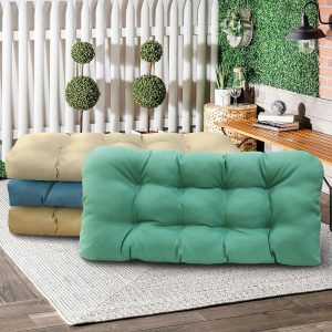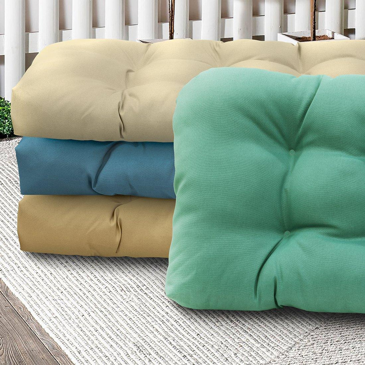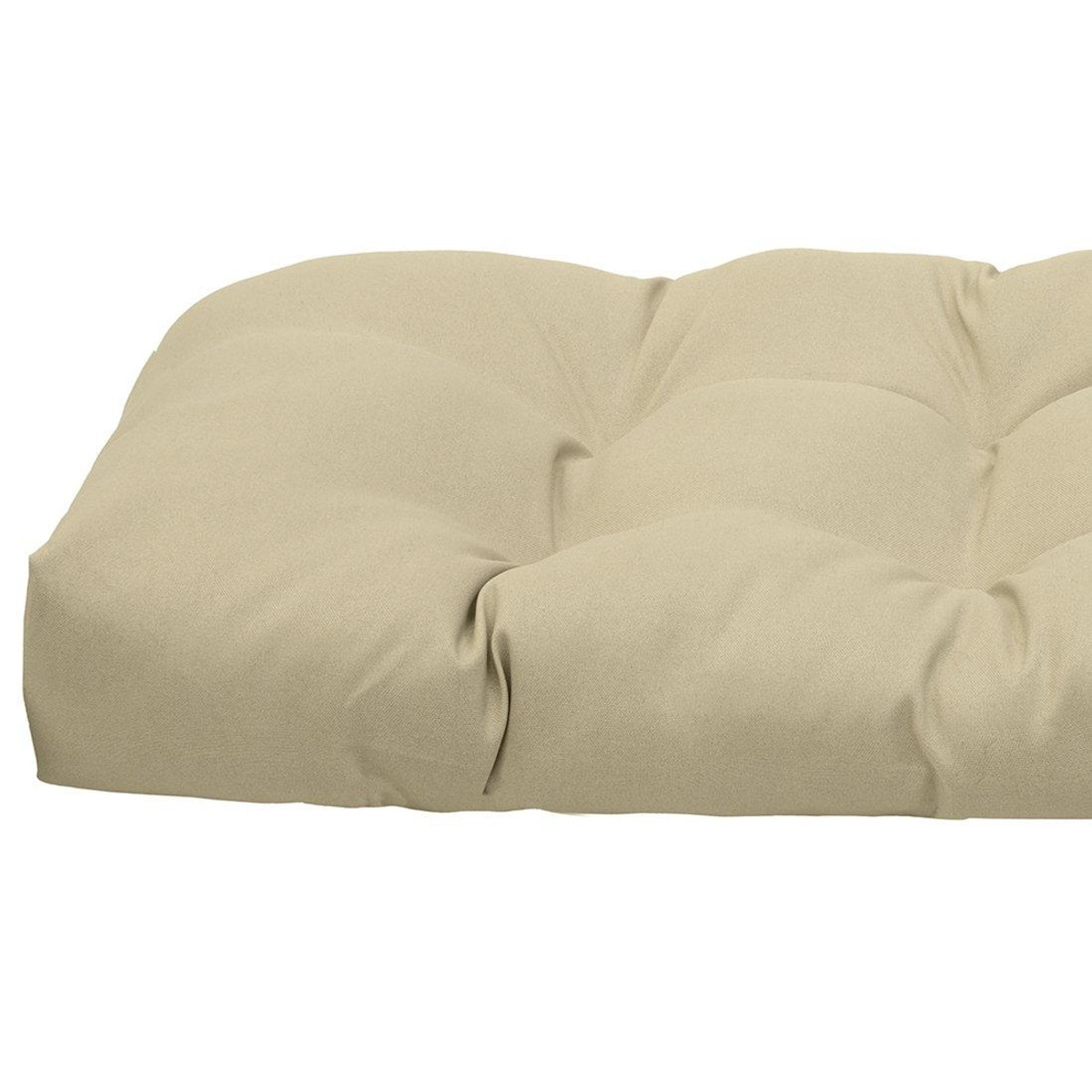 Add a simple yet chic touch to your outdoor decor and furniture with this double settee seat cushion from Outdoor Decor by Commonwealth! It features a stylish solid-color design, quilted look, a durable and comfortable feel, UV and fade resistance, and is water repellant. Fabrication is 100% polyester for the shell and filling. Measures 19 in x 44 in.