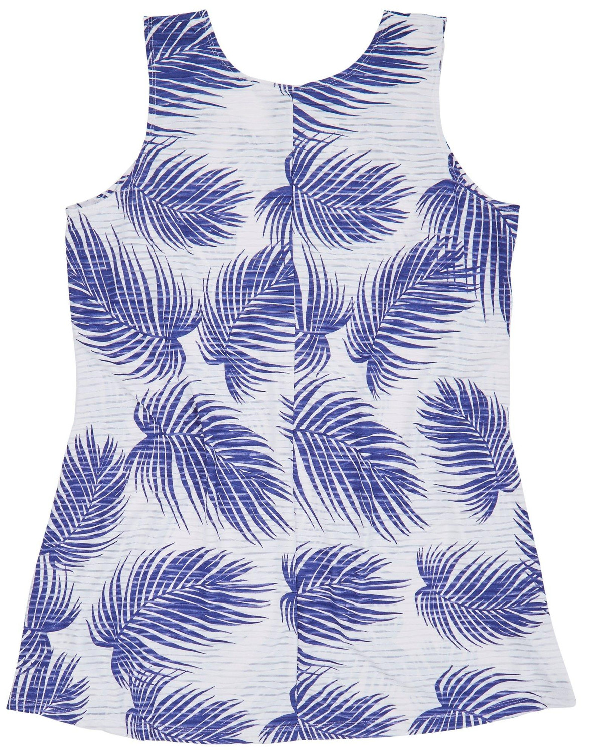 Get ready for your next beach or pool adventure in this stylish coverup dress! It features burnout fabric accents, a colorful palm print pattern, and metallic shoulder o-ring details. Fabrication 97% polyester, 3% spandex.