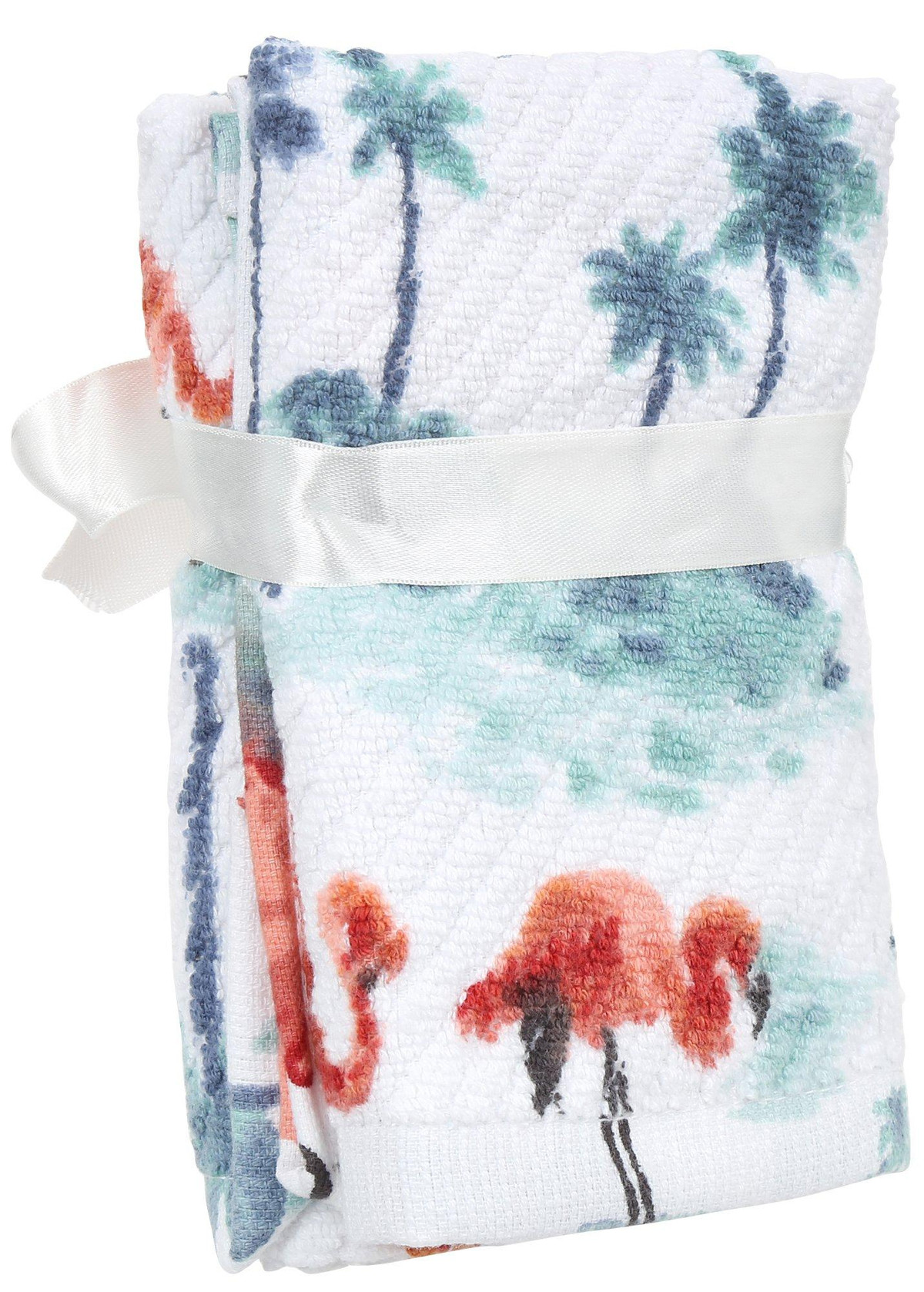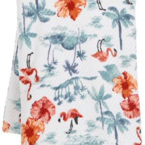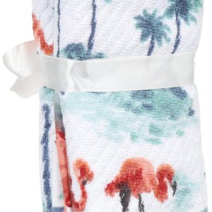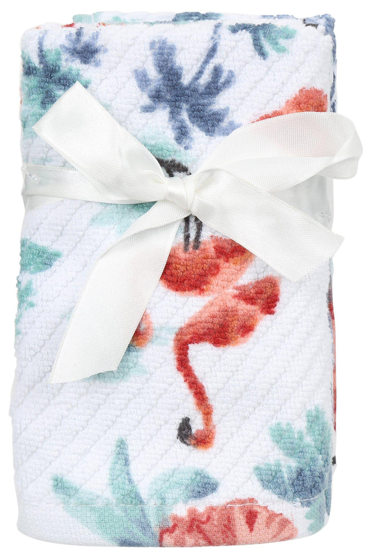 Add a coastal flair to your bathroom with the Flamingo Print towel collection. The towels feature a soft woven cotton fabric and a colorful print design featuring palms and flamingos. Bath towel measures 27 in x 52 in. 2-pack hand towels measure 26 in x 16 in. each. 2-pack fingertip towels measures 12 in x 18 in. each. This towel collection is not a set. Each towel sold separately (hand towel and fingertip towel comes as two-piece sets).