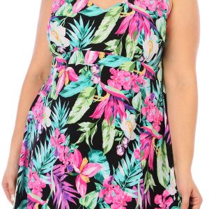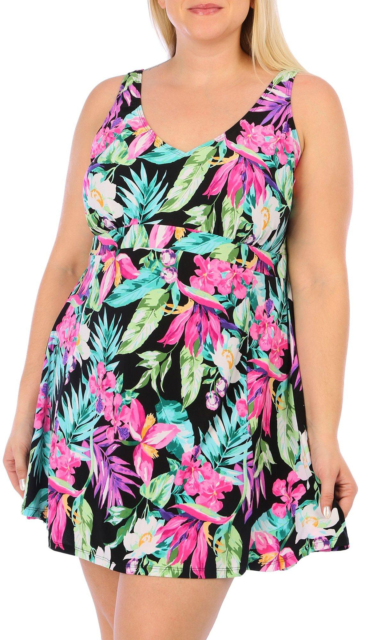 Dive into summer with this V-Neck Princess Seam Swim Dress. This stunning piece features a vibrant floral print pattern that radiates tropical vibes. The princess seams create a flattering silhouette, while the adjustable straps ensure a perfect fit. Ideal for beach days or poolside lounging, this swim dress combines style and comfort effortlessly. Make a splash with this chic and elegant swimwear essential.