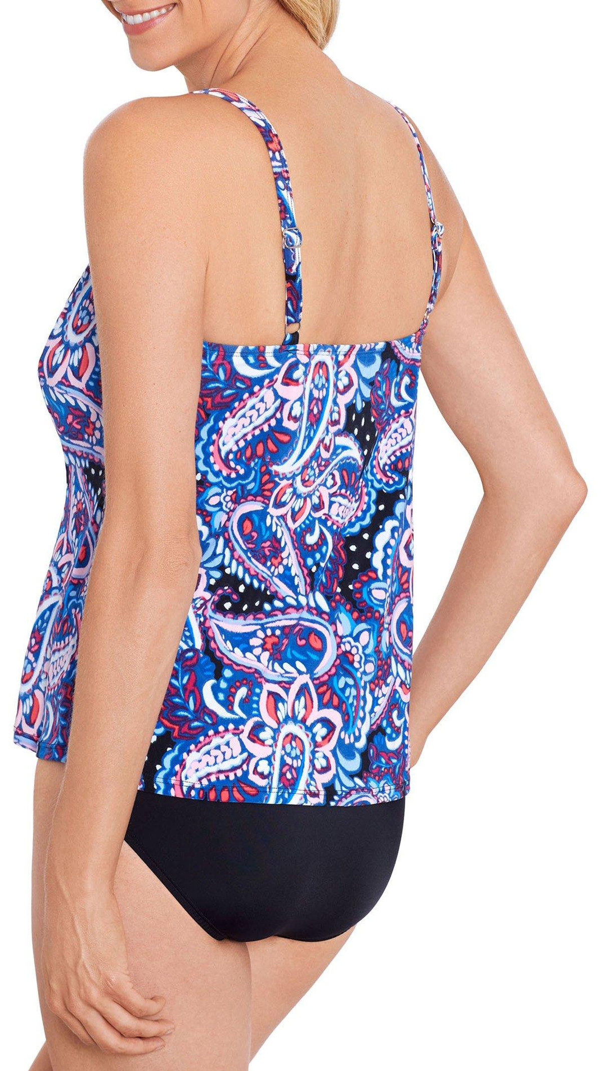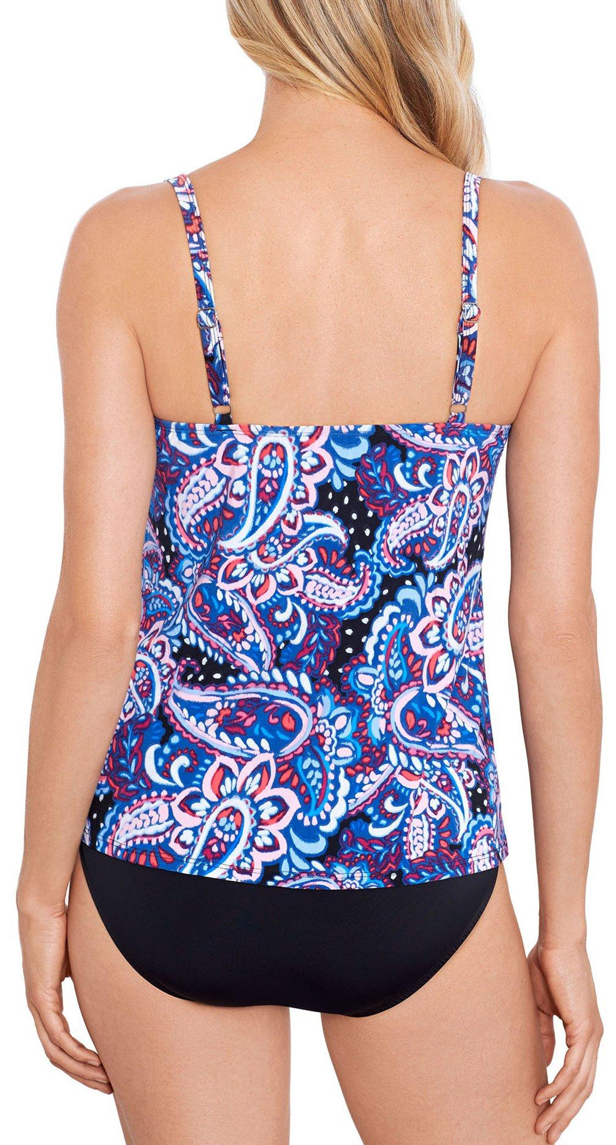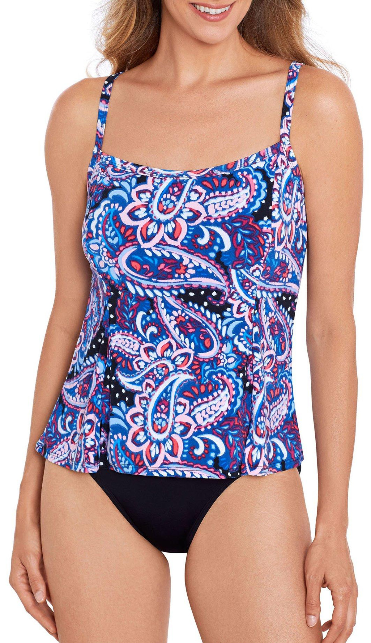 This princess seam tankini top features a flattering, feminine fit with its expertly designed seams for added shape. The vibrant print adds a bold, stylish touch, making it perfect for the beach or poolside. Comfortable and supportive, this tankini top offers a great combination of style and coverage. Fabrication 82% nylon, 18% Lycra Xtra Life elastane
