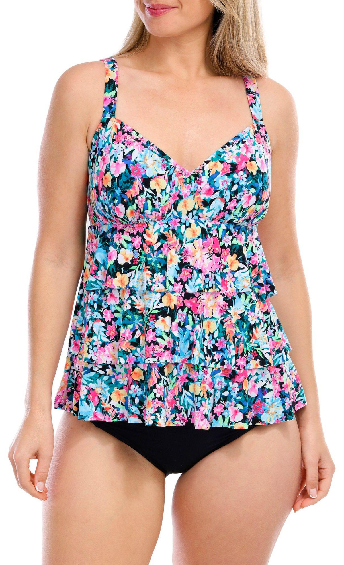Introducing our Women’s Floral Triple Tier Tankini Top, crafted from a comfortable blend of polyester and spandex. This stylish top features a vibrant floral print and a unique triple tier design for a flattering and feminine look. The adjustable straps ensure a perfect fit, making it ideal for any beach or poolside occasion. Enjoy both style and comfort with this chic tankini top.