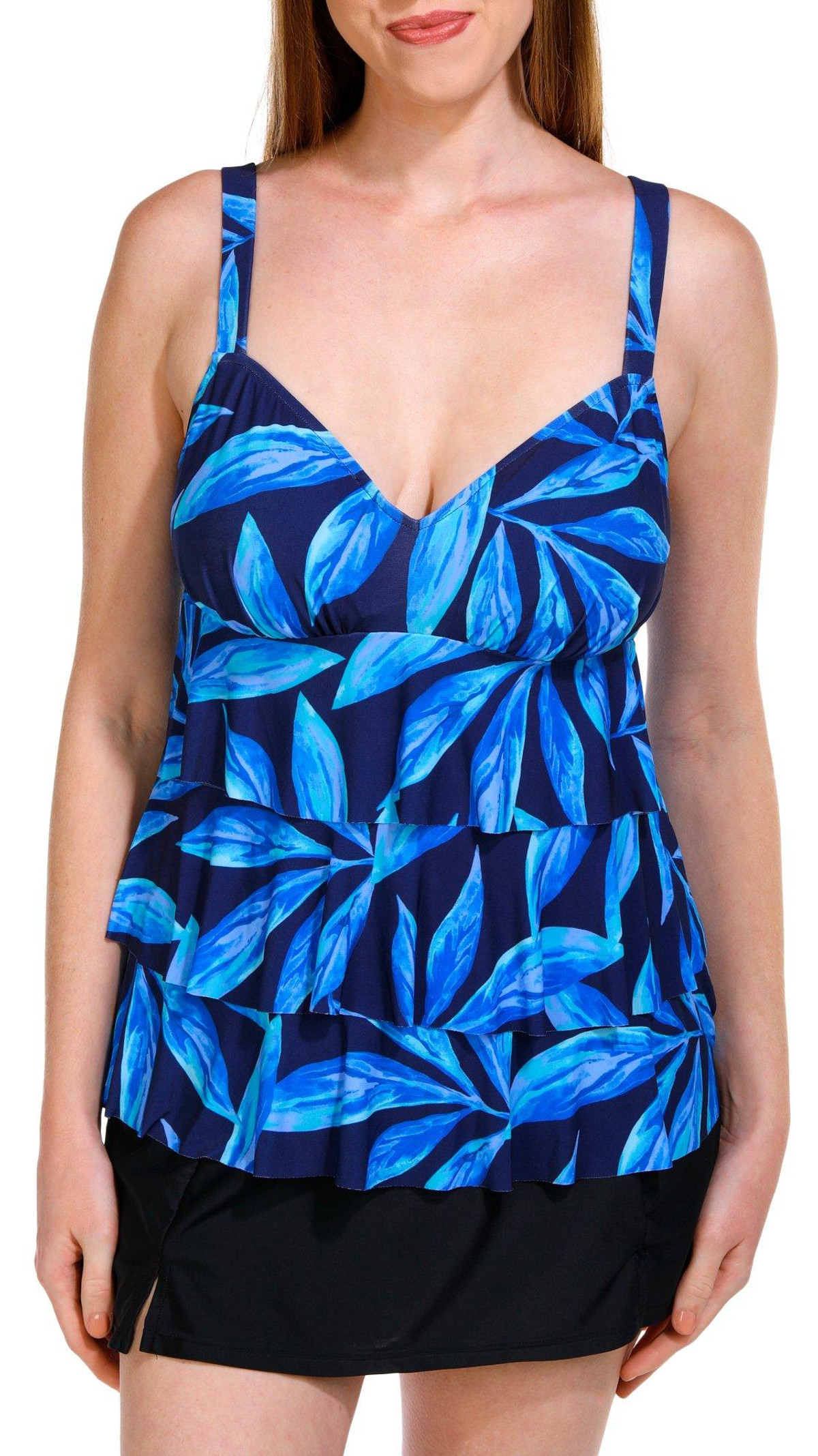 Dive into style with our Triple-Tier Tankini Top. This flattering swimwear piece features a V-neckline and molded cups for excellent support and shape. The triple-tier design adds a touch of elegance and creates a beautiful silhouette. With adjustablDive into style with our Triple-Tier Tankini Top. This flattering swimwear piece features a V-neckline and molded cups for ex support, and versatility.