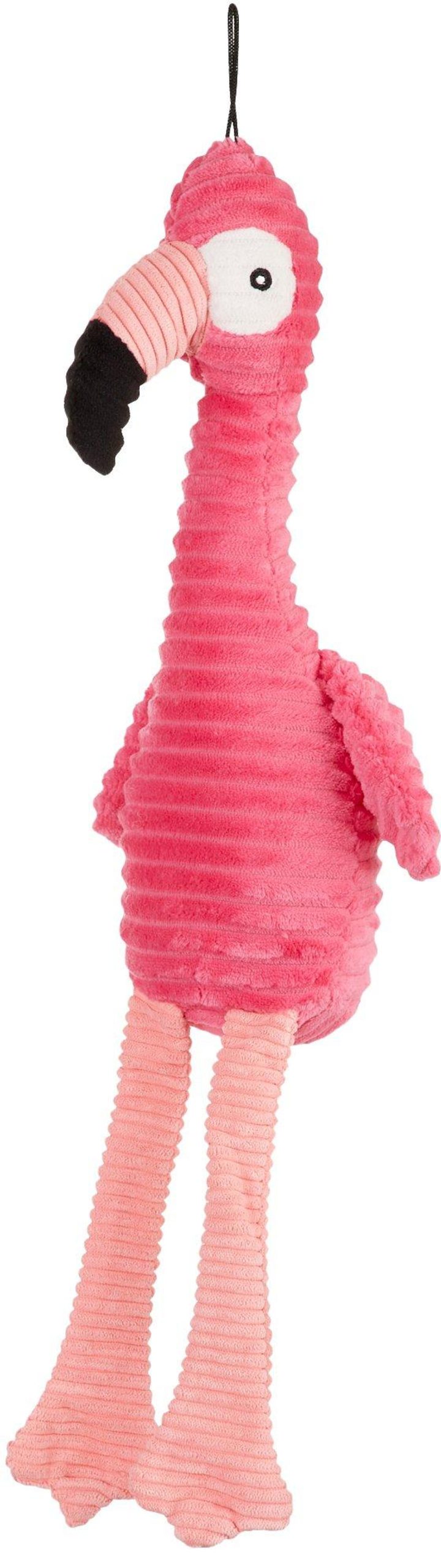 Patchwork Pet offers fun and innovative pet toys for your beloved furry friend. This plush flamingo dog toy features durable construction, double stitched seams, and a squeaker inside. Measures 21”H.
