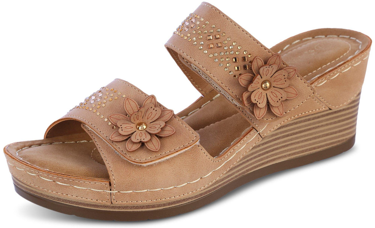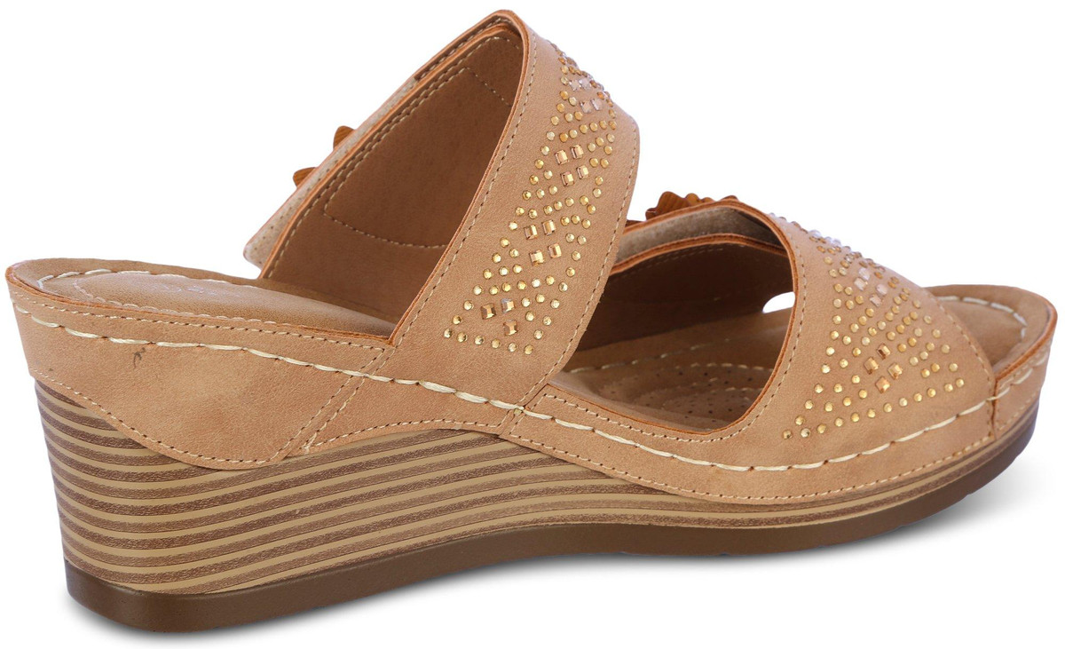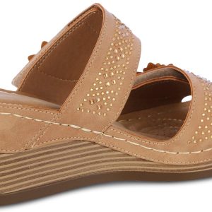 Step into elegance with the Larimer wedge sandals, featuring stunning rhinestone and floral accents that add a touch of glamour to any outfit. Designed with a comfortable wedge style heel, these shoes provide both height and stability, making them perfect for any occasion.