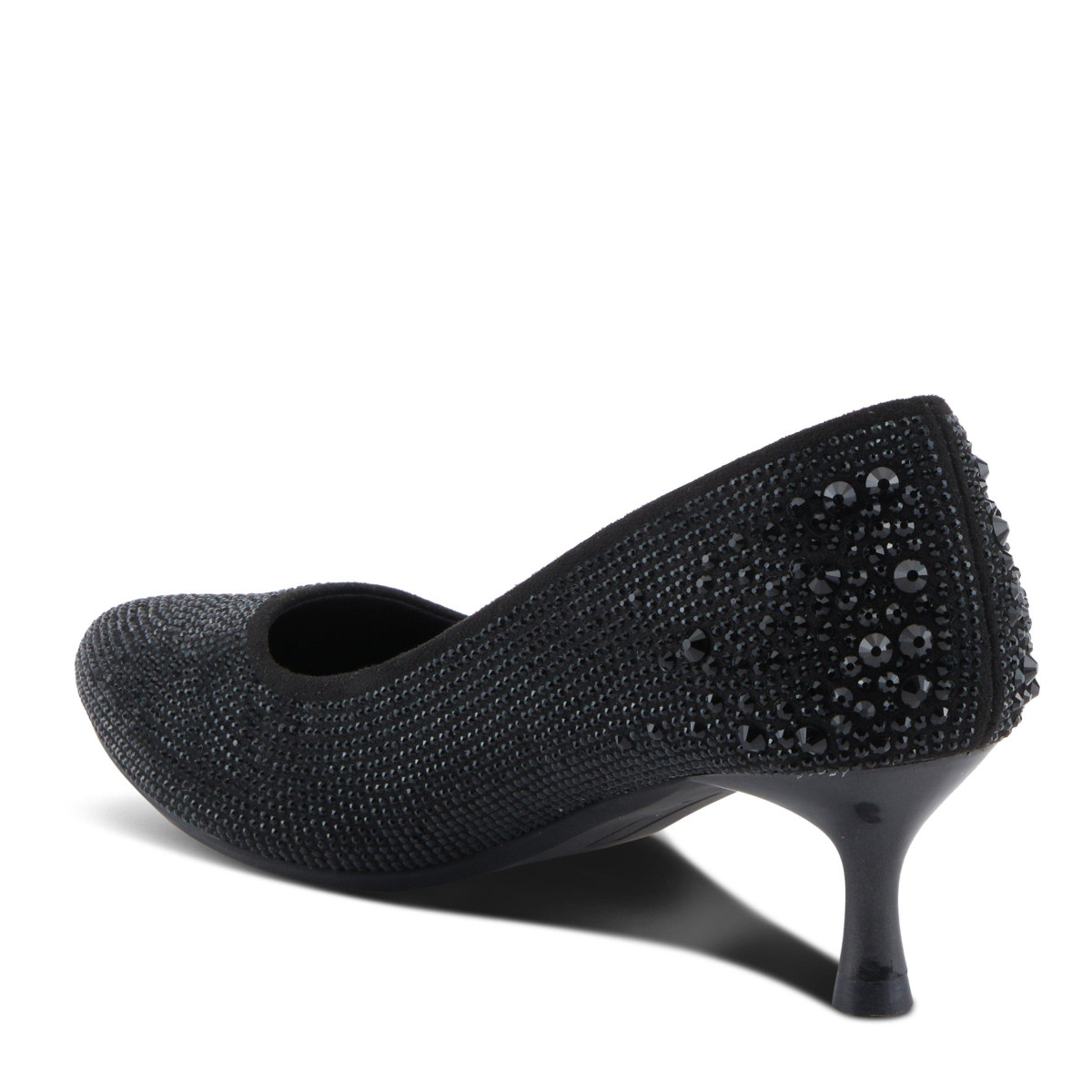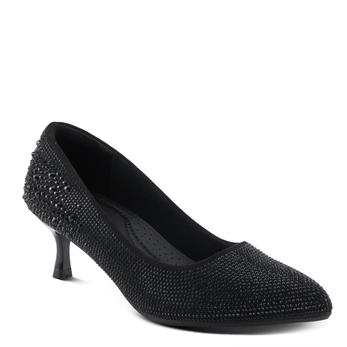 Add sparkle to every step with the Tyanna Kitten Heel Dress Pumps. These elegant slip-ons feature a sleek pointy toe and are adorned with delicate crystals across the textile upper. A dazzling array of rounded crystals embellishes the 2 in. heel, creating a glamorous finish. Perfect for evenings out, dining, or special occasion. These pumps radiate sophistication and charm.