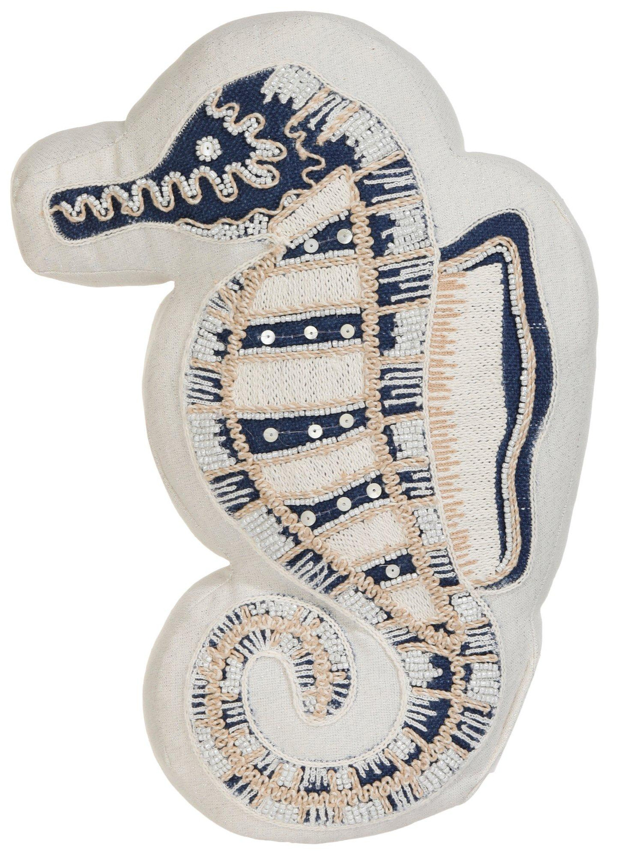 Bring a touch of coastal decor to your living room or bedroom, with this 17 in Sea Horse Embellished Decorative Pillow. Featuring a beautiful sea horse design, this pillow effortlessly enhances any living space with its ocean flair. Crafted from high-quality materials, this pillow offers both style and comfort, making it a perfect addition to your decor. Measures approximately 11 in x 17 in.