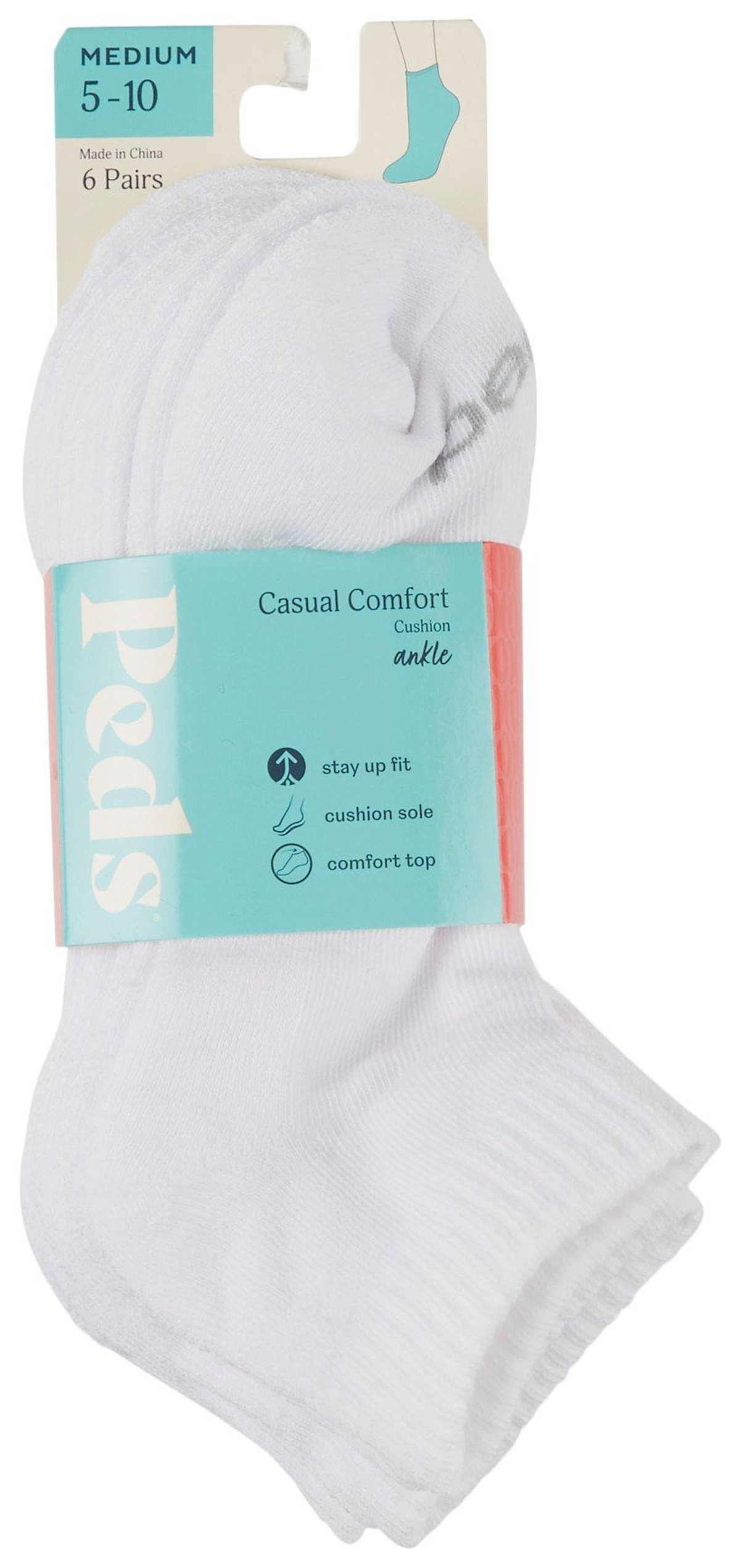 Introducing our Women’s 6-Pack Cushioned Ankle Socks, designed for ultimate comfort and durability. Featuring a cushioned sole, these socks provide extra support with every step. The comfort top ensures a snug fit without constriction, while the stay-up design keeps them in place all day. Suitable for women’s shoe sizes 5-10, these socks are perfect for everyday wear, offering both style and practicality.