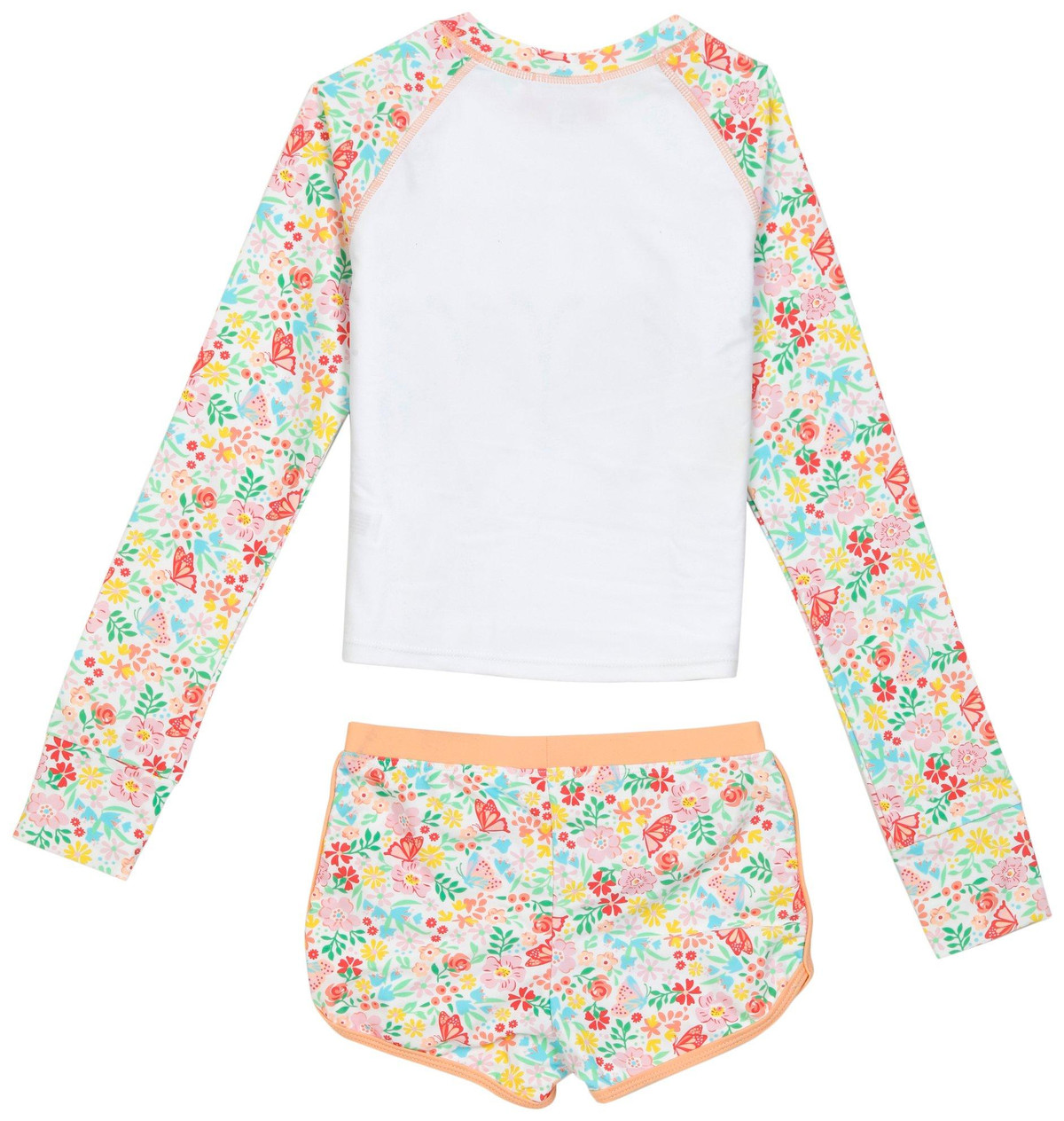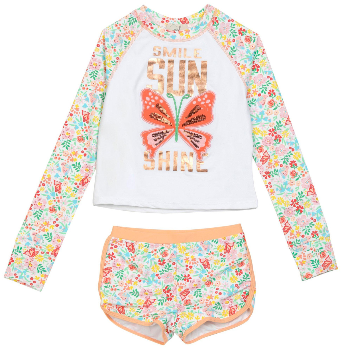 Keep your little one stylish and protected with the Girls’ 2 Pc Floral Butterfly Rashguard Set. Made from a blend of nylon and elastane, this set offers a comfortable and flexible fit. The long sleeve rashguard features a charming sequin butterfly and floral graphic design, paired perfectly with matching swim bottoms. With UPF 50+ protection, this set ensures excellent sun safety for all her beach or pool adventures. Combining fashion and function, it’s a must-have for sunny days!