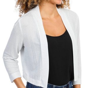 Elevate your style with our Womens Glitter Open Front Cardigan. This chic and versatile piece features a shimmering glitter finish that adds a touch of glamour to any outfit. The open front design makes it easy to layer over your favorite tops, while the lightweight fabric ensures comfort throughout the day. Fabrication is a blend of metallic, nylon and spandex.
