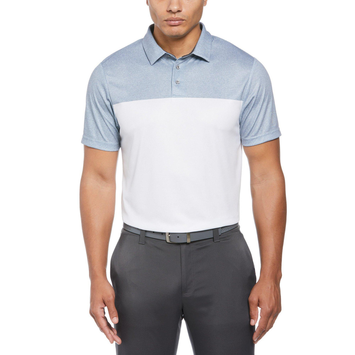 An eye-catching addition to any guy’s golf attire, this polo shirt features bold color blocking that will help to set your style apart. Fabrication is 100% polyester.