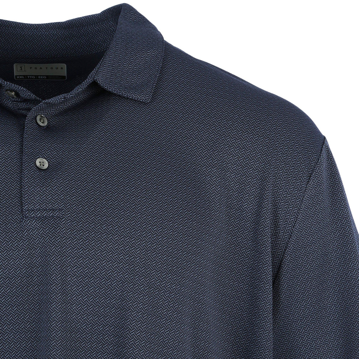 Gear up for the golf course in this stylish polo shirt! This golf polo features a three button placket detail, sleek chevron print, and moisture wicking properties.