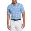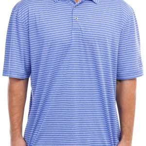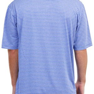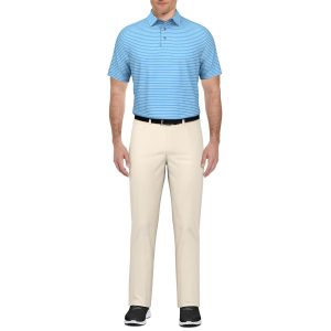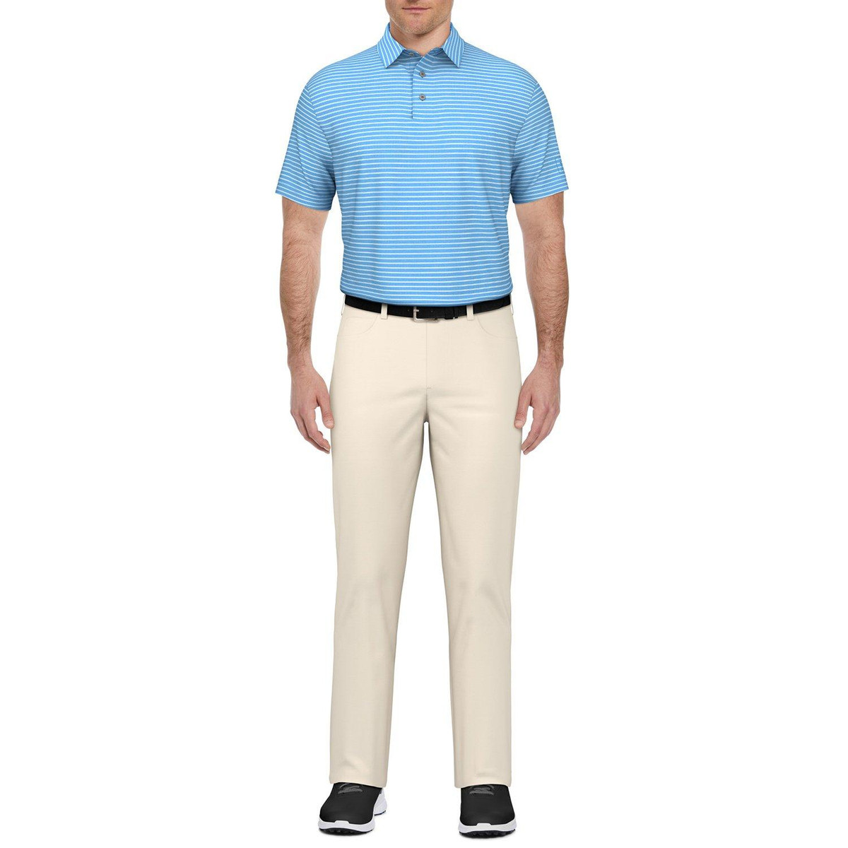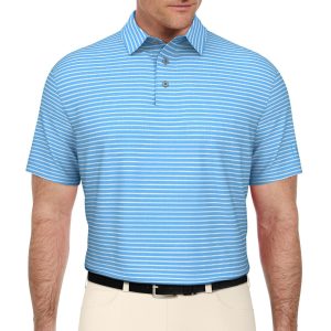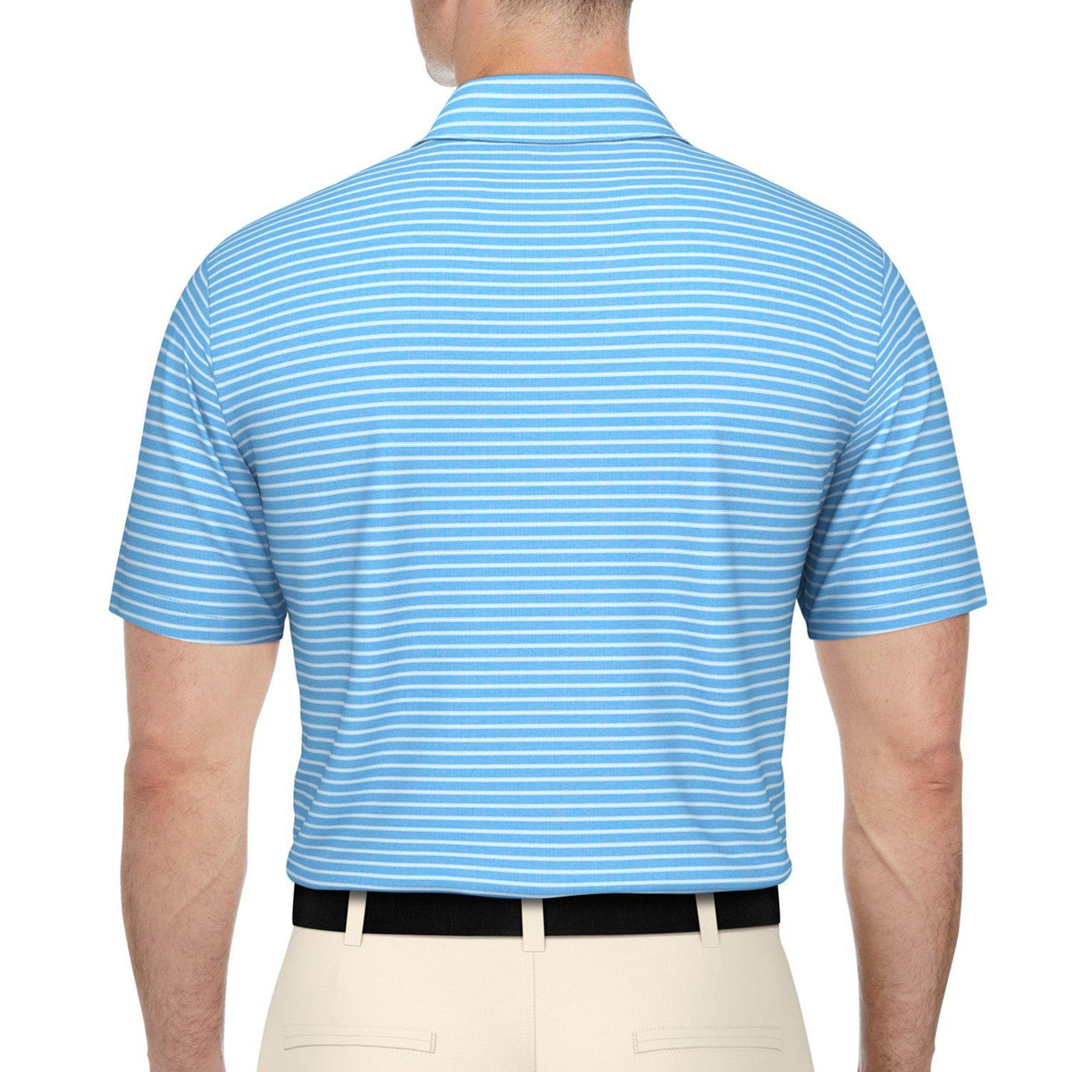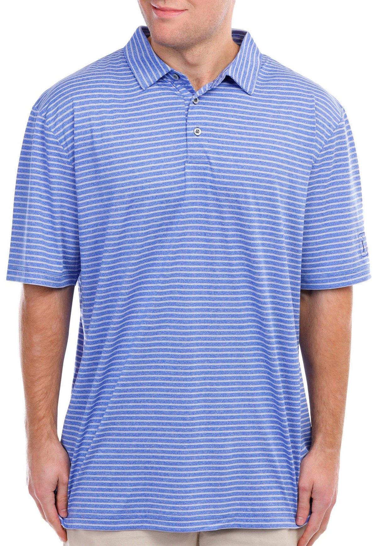 Slim heathered stripes add casual flair to this classic mens golf shirt. Great for both competitive rounds and weekend errands, this versatile mens golf top features moisture wicking to help keep you dry. Sun protection guards against damaging UV rays, while stretch shoulder seams add freedom of movement so you can make each swing without feeling constricted.