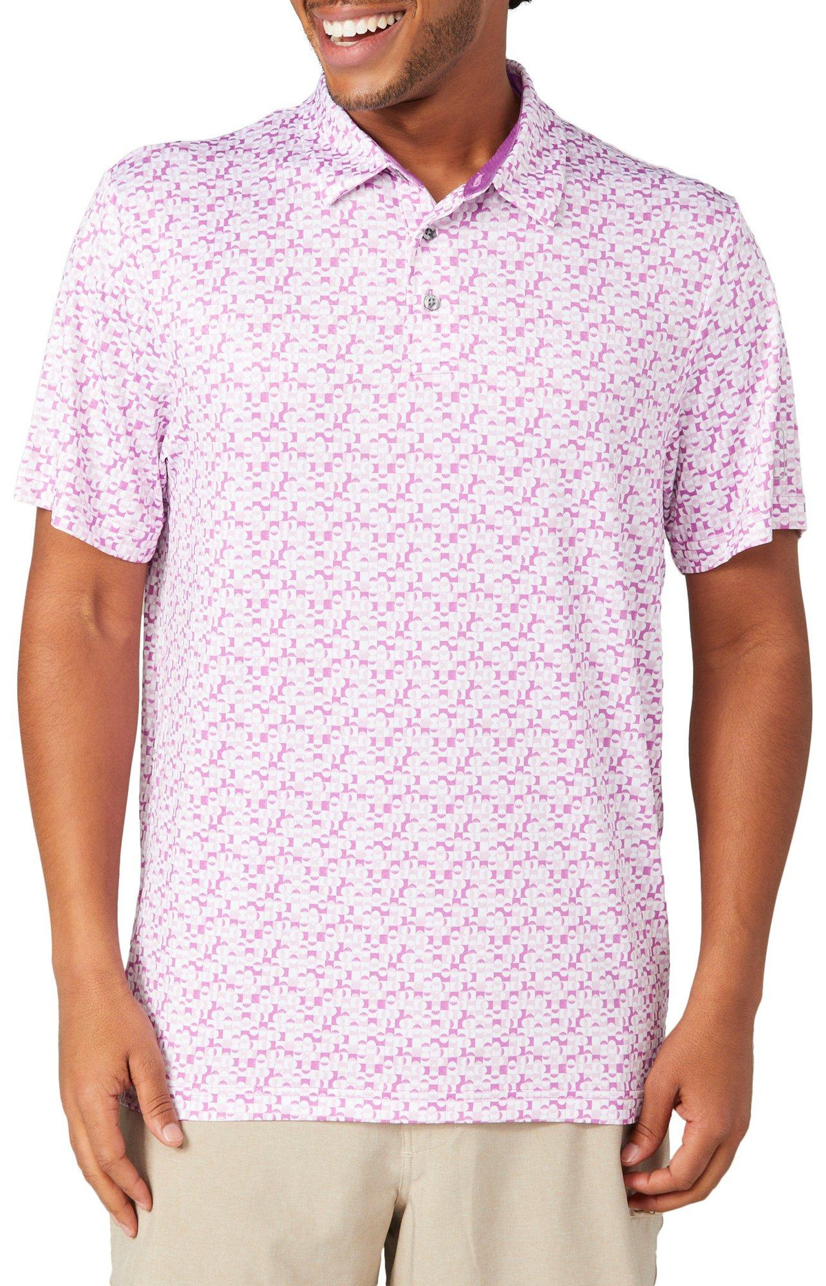 Gear up for the golf course in this polo. This golf polo provides a three button placket detail, UPF 50 sun protection, and moisture wicking properties. Fabrication is 92% polyester and 8% elastane.