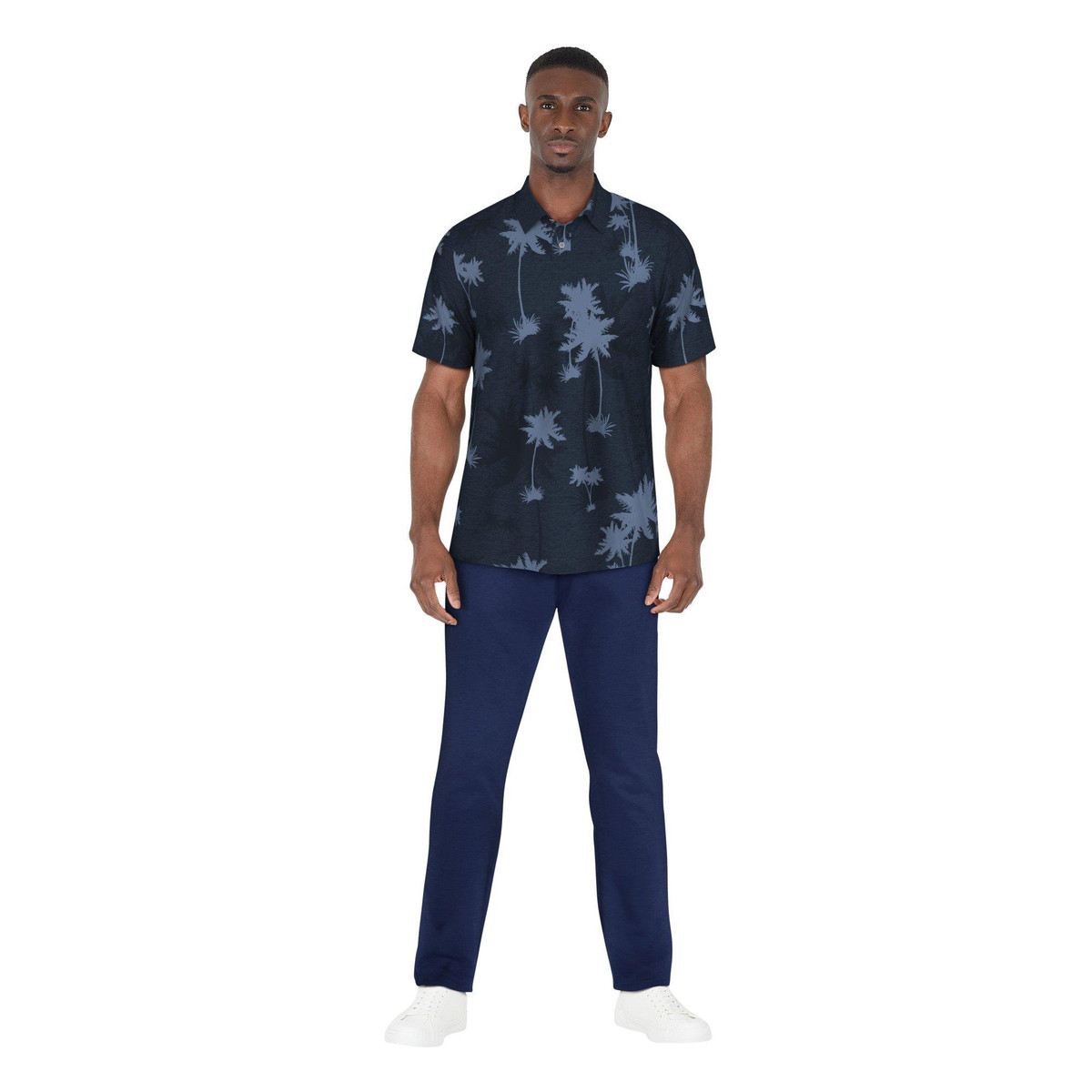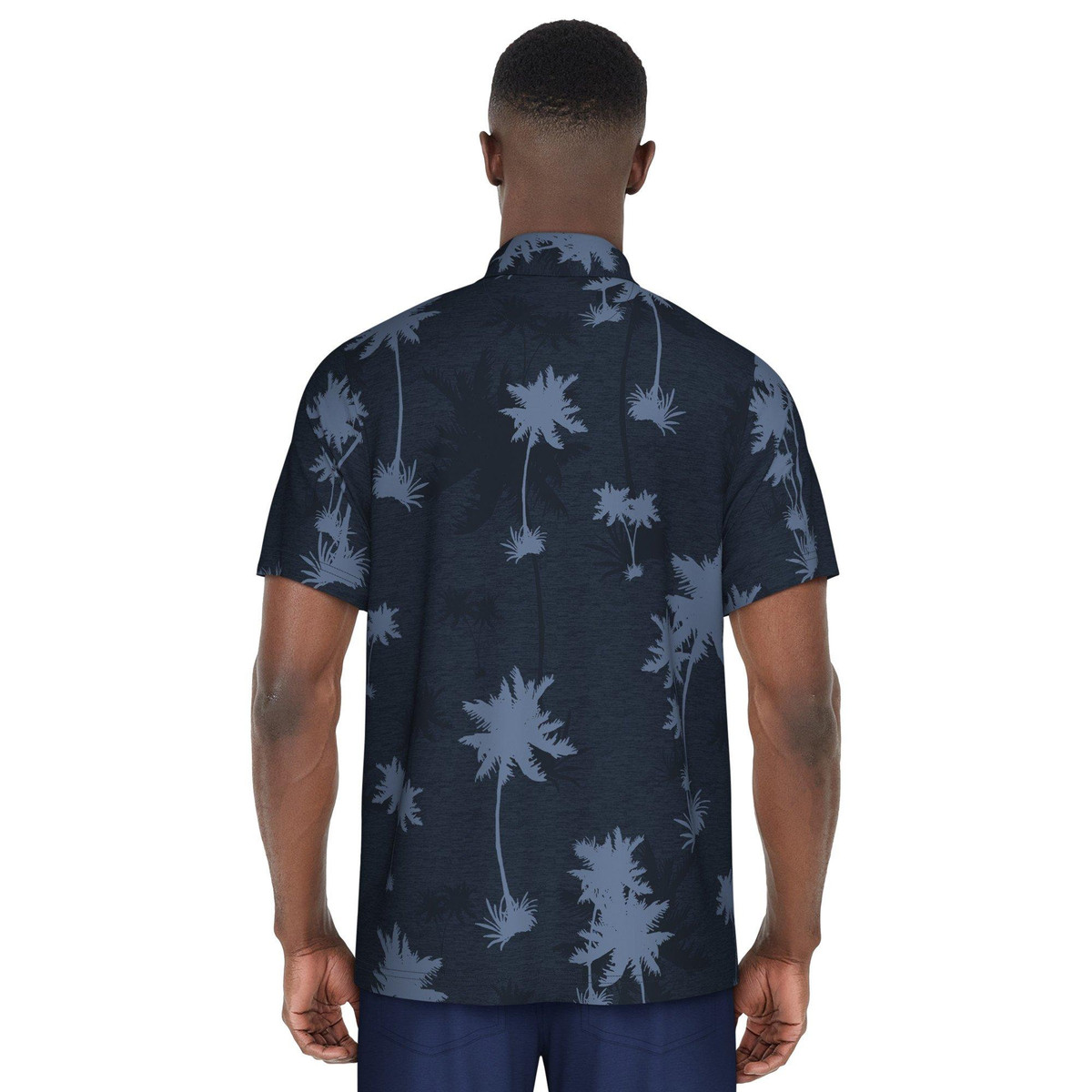 Classic tropical vibes meet sharp athletic style in this palm-printed mens golf shirt from PGA TOUR Apparel. The golf polo shirt is crafted from a soft, lightweight jersey fabric for impressive comfort. Sun protection helps to block harmful UV rays from passing through the material, while moisture wicking moves sweat away from your body to help keep you dry. The shirts stretch shoulder seams let you wind up and follow through without feeling constricted. Fabrication is 100% polyester.