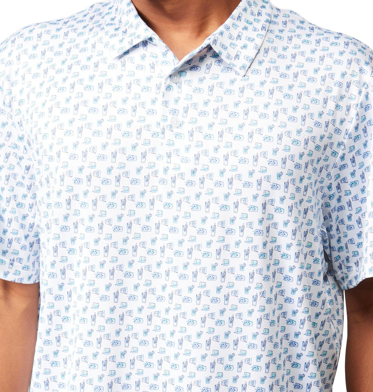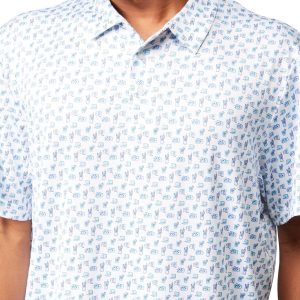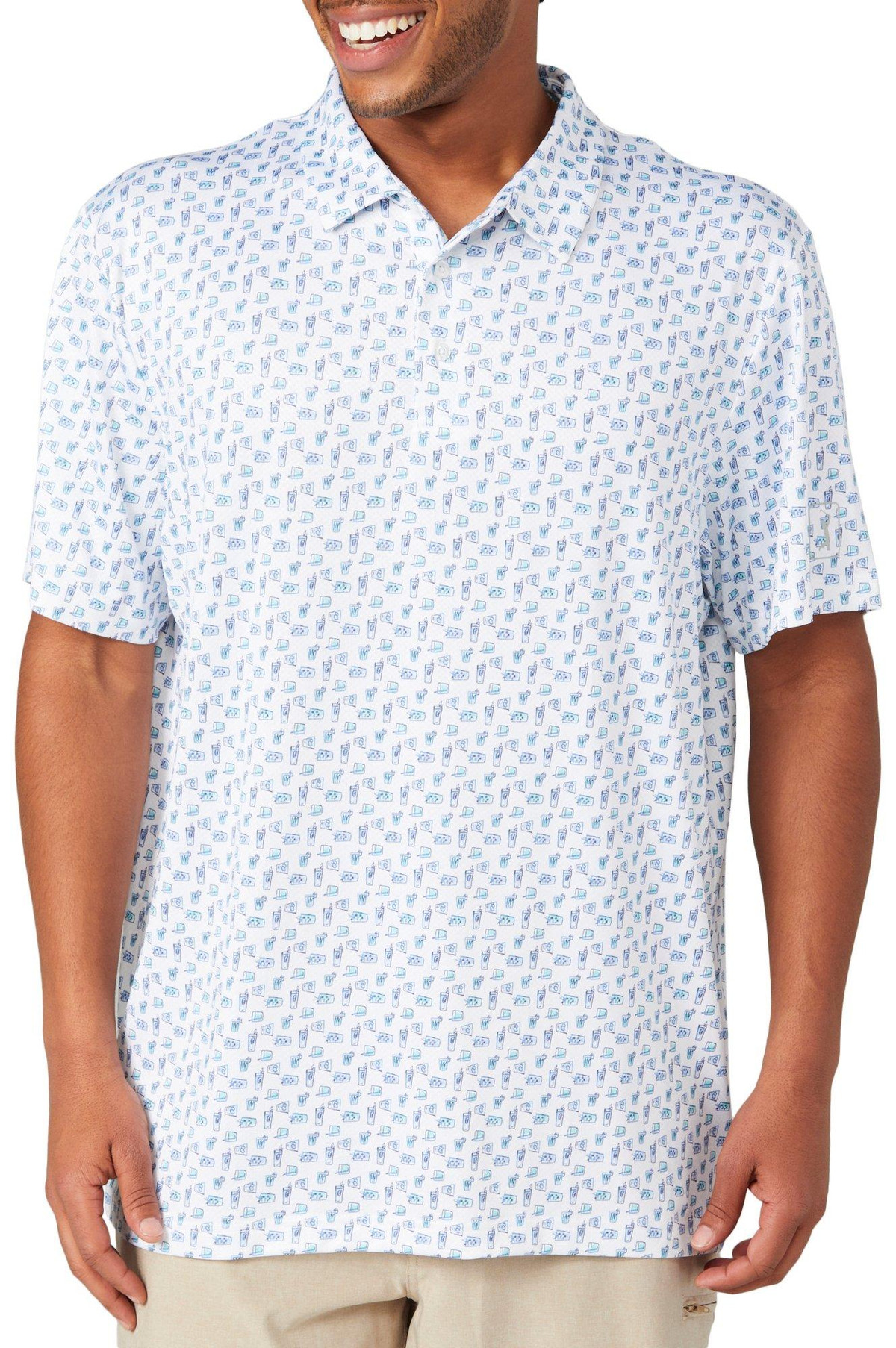 Gear up for the golf course in this polo. This golf polo provides a three button placket detail, UPF 50 sun protection, and moisture wicking properties. Fabrication is 92% polyester and 8% elastane.
