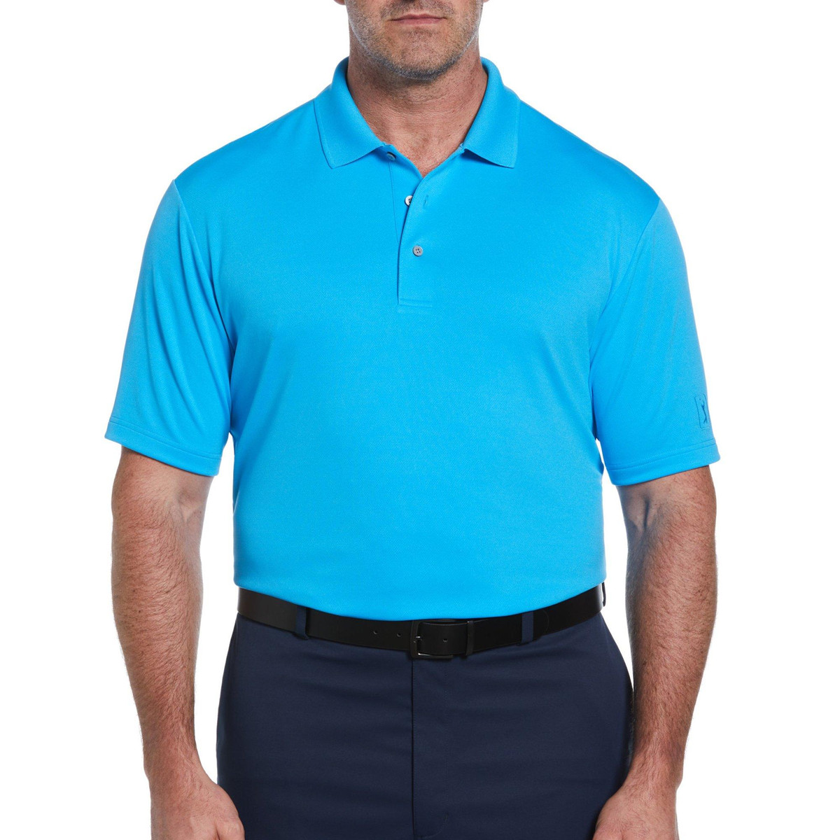 Gear up for the golf course in this polo shirt by PGA TOUR. Own the green in this trendy performance short sleeve golf polo shirt! This golf polo features a soft & lightweight fabric, a classic solid color design, handsome three-button placket, Moisture-wicking technology keeps you feeling dry, AirFlux ventilated fabric that allows air to circulate, and UPF sun protection to keep you protected all day.