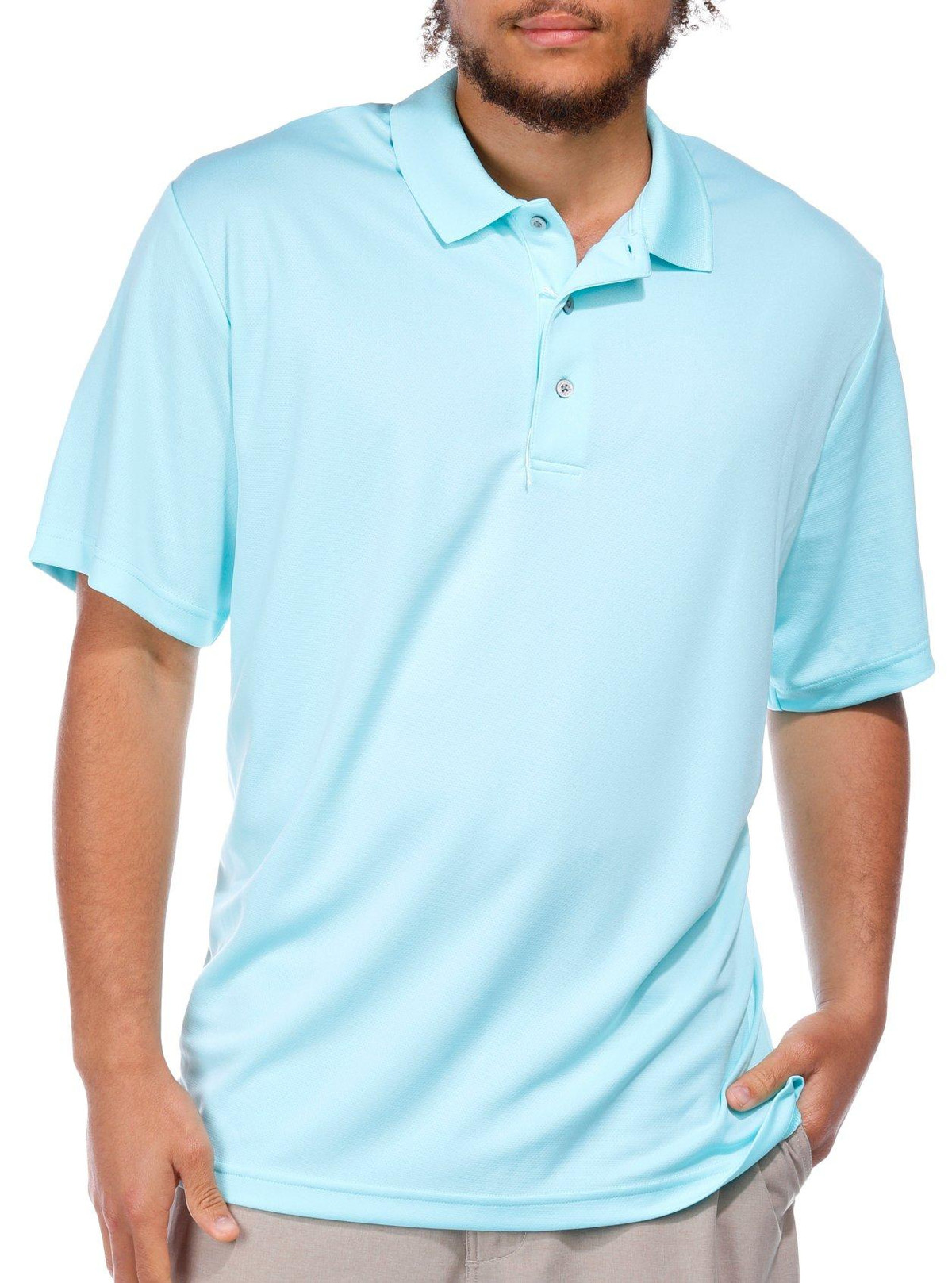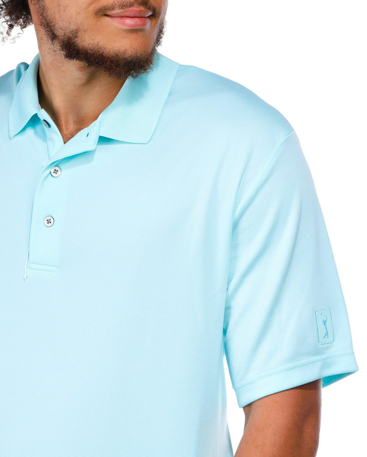Gear up for the golf course in this polo shirt by PGA TOUR. Own the green in this trendy performance short sleeve golf polo shirt! This golf polo features a soft & lightweight fabric, a classic solid color design, handsome three-button placket, Moisture-wicking technology keeps you feeling dry, AirFlux ventilated fabric that allows air to circulate, and UPF sun protection to keep you protected all day.