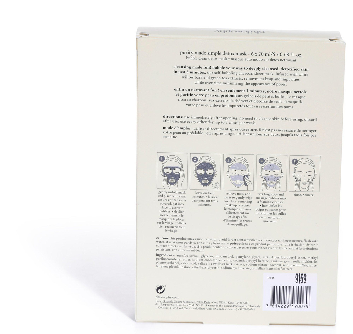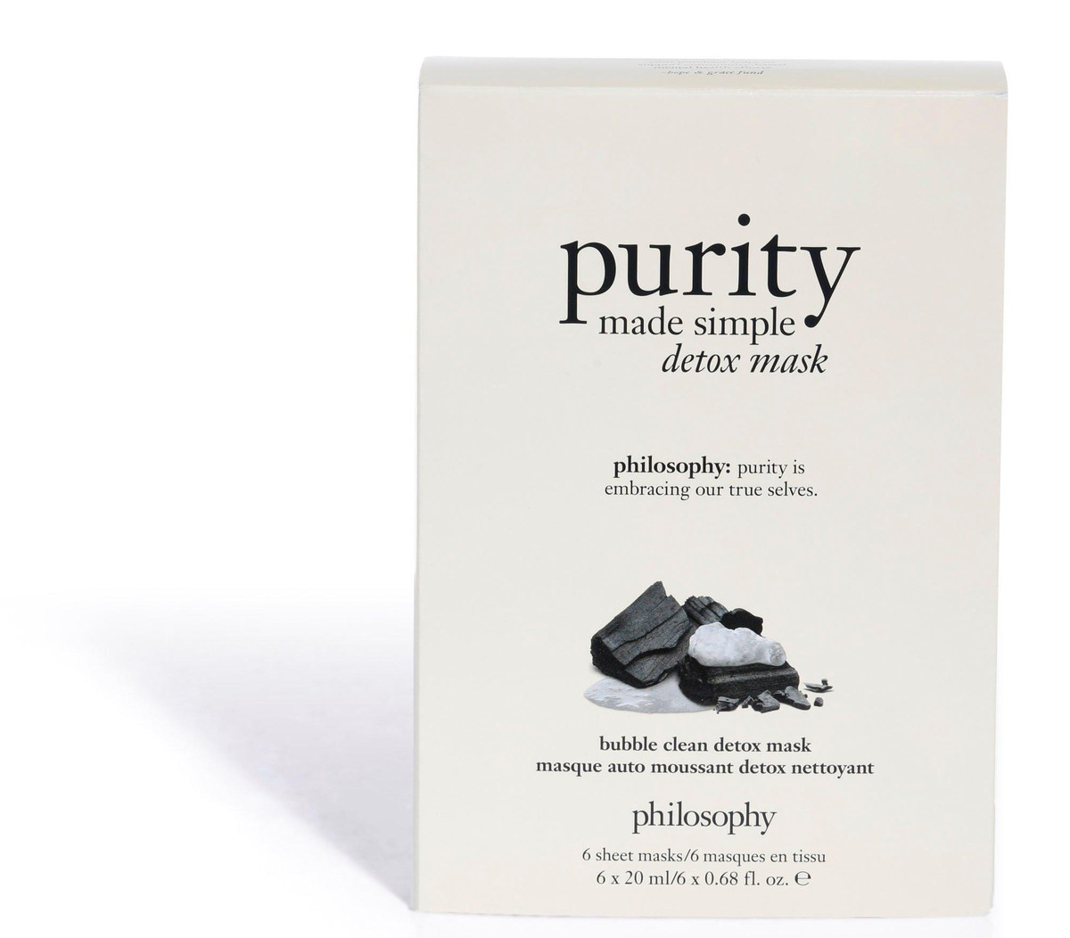 Bubble your way to deeply cleansed, detoxified skin in just 3 minutes. This self-bubbling charcoal sheet mask from Philosophy is in infused with white willow bark and green tea extracts, and removes makeup and impurities while over time minimizing the appearance of pores! Includes 6 single-use sheet masks.