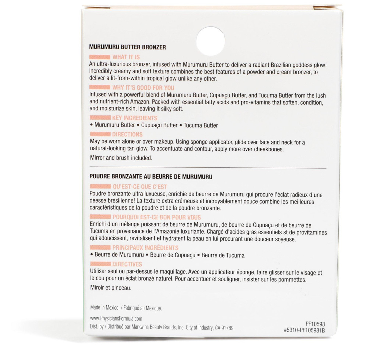 An ultra-luxurious bronzer, infused with Murumuru Butter to deliver a radiant Brazilian goddess glow! Incredibly creamy and soft texture conbines the best features of a powder and cream bronzer, to deliver a lit-from-within tropical glow unlike any other! Infused with a powerful blend of Murumuru Butter, Cupuacu Butter and Tucuma Butter from the lush Amazon.