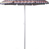 This umbrella is perfect for the beach, camping, or picnics. The pole measures 79.5” tall and 1.25” diameter with a tilting option as well as pointed end for easier penetration into the ground. Umbrella measures 57.5” across. Sturdy carry bag with handle included.