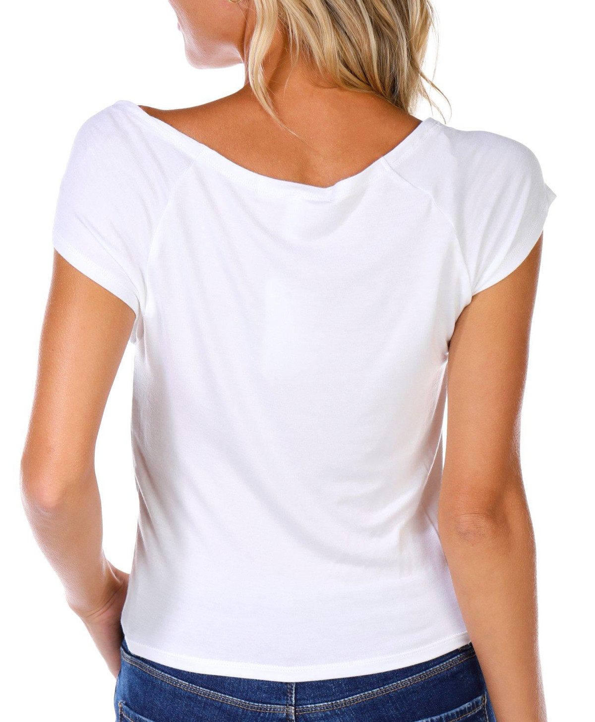 Add a touch of charm with this short sleeve white top from Planet Gold, featuring a flattering sweetheart neckline. Soft fabric offers all day comfort while the fitted silhouette enhances any casual or dressy look. Perfect for pairing with jeans or skirts, its versatile design makes it ideal for casual outings or special occasions. Measures approximately 10 in. Fabrication 95% nylon, 5% spandex.
