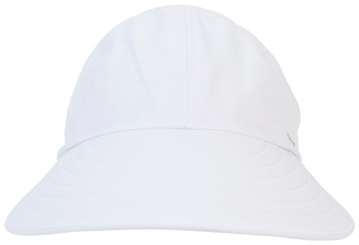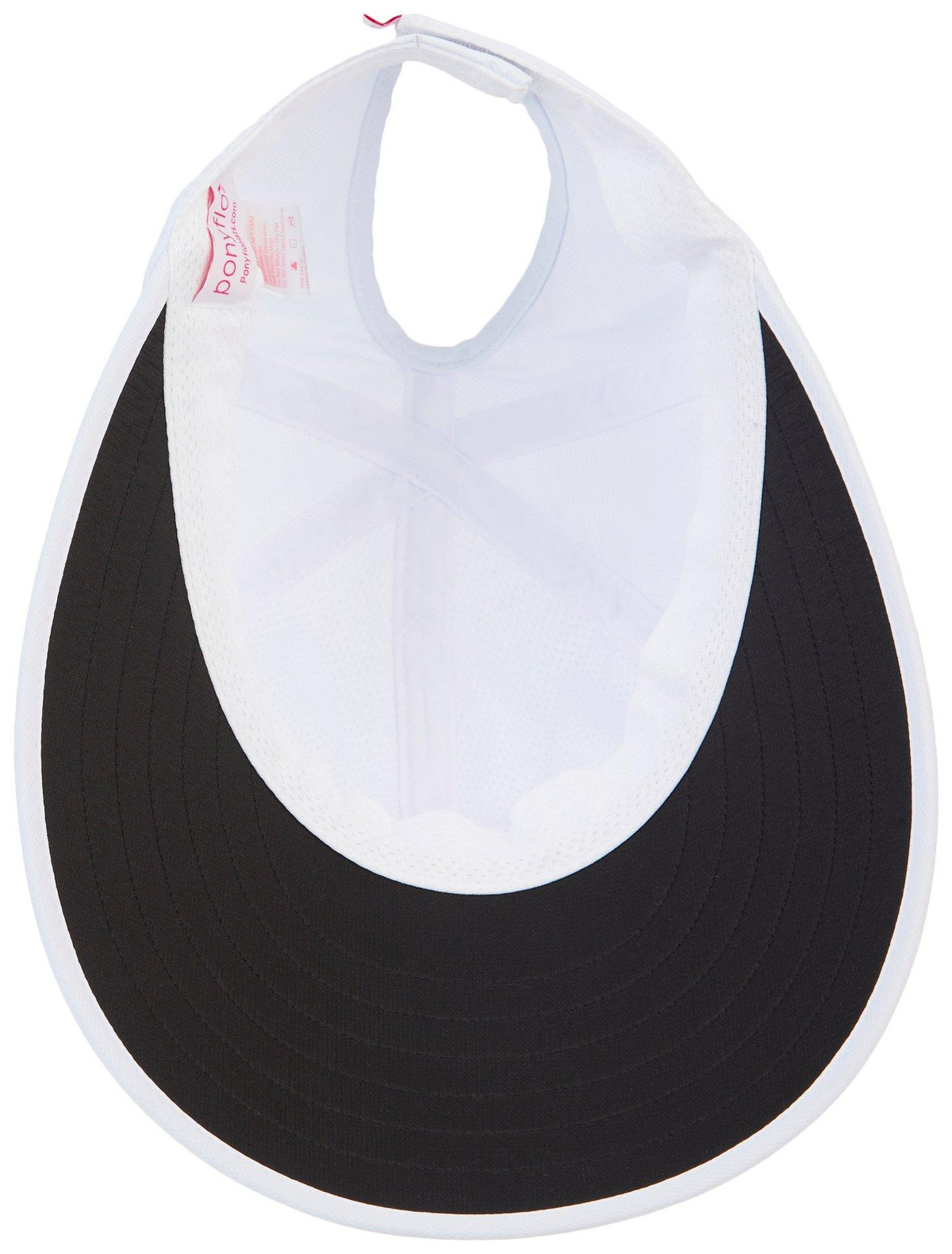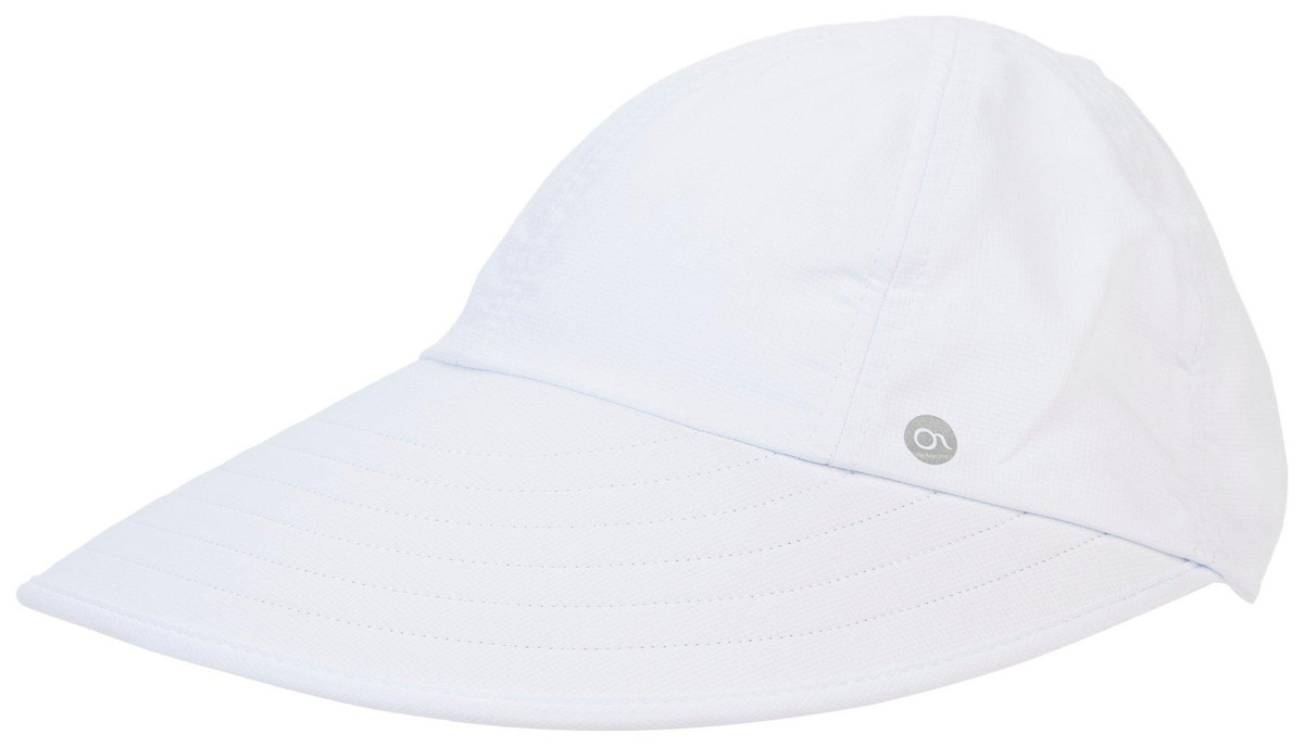 This cap features a solid color design on a lightweight polyester fabric, a large pre-curved visor, UV sun protection where skin is covered, quick dry fabric, and an adjustable self-adhesive back with large ponytail opening. One size fits most. Visor measures approximately 4 in.