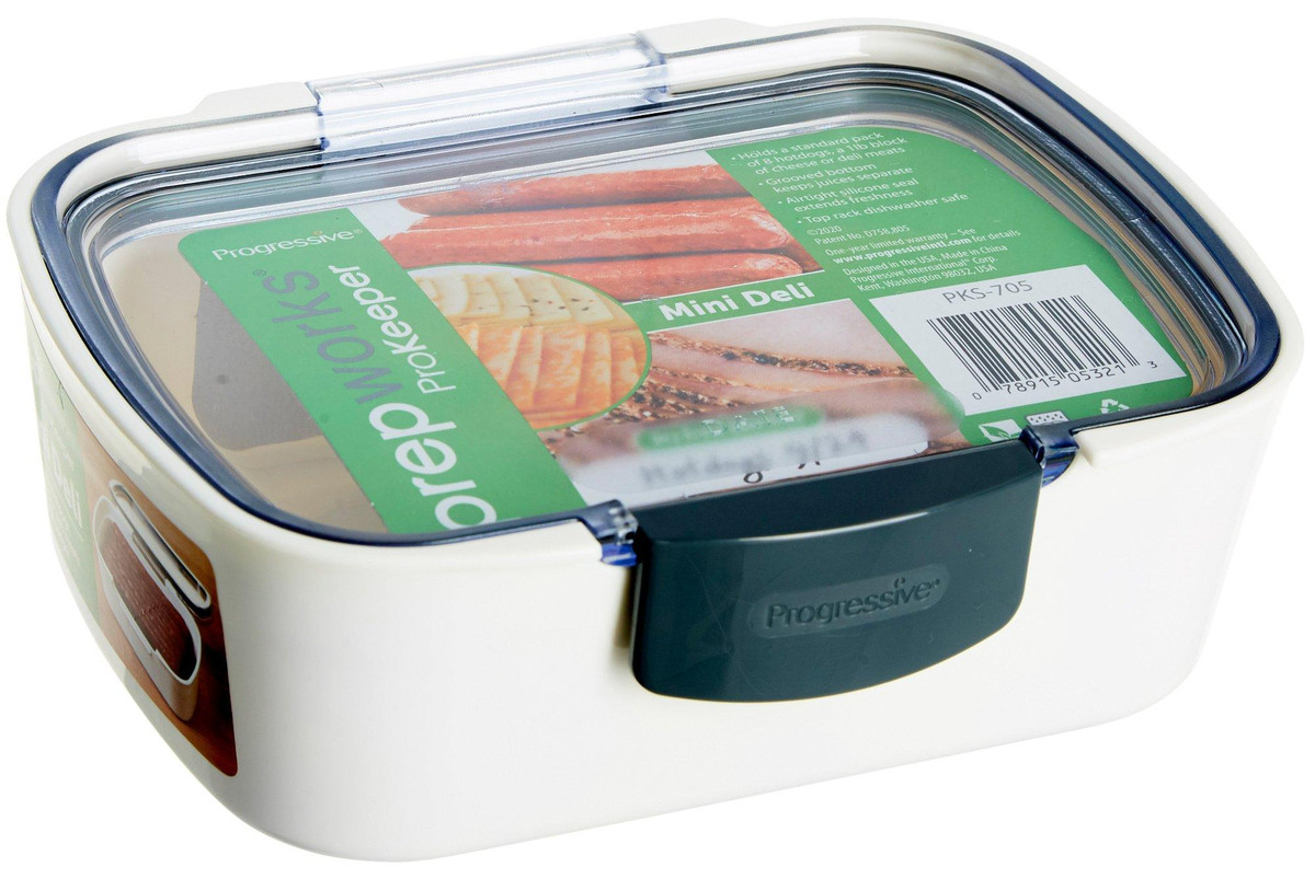 Progressive Prepworks ProKeeper Mini Deli Container features airtight silicone seal and grooved bottom. Measures 7”L x 5.5”W x 2.5”H.