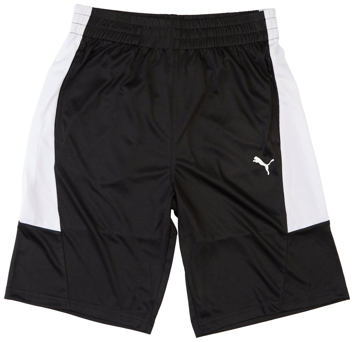 Give your young athlete the edge with these high performance basketball shorts. Designed for comfort and movement, the elastic waist provides a secure fit while the lightweight polyester fabric keeps him cool on the court. The iconic white puma logo on the bottom left leg adds a bold touch of style. Whether for practice or game day, these shorts deliver the durability and flexibility needed to play hard and stay confident.