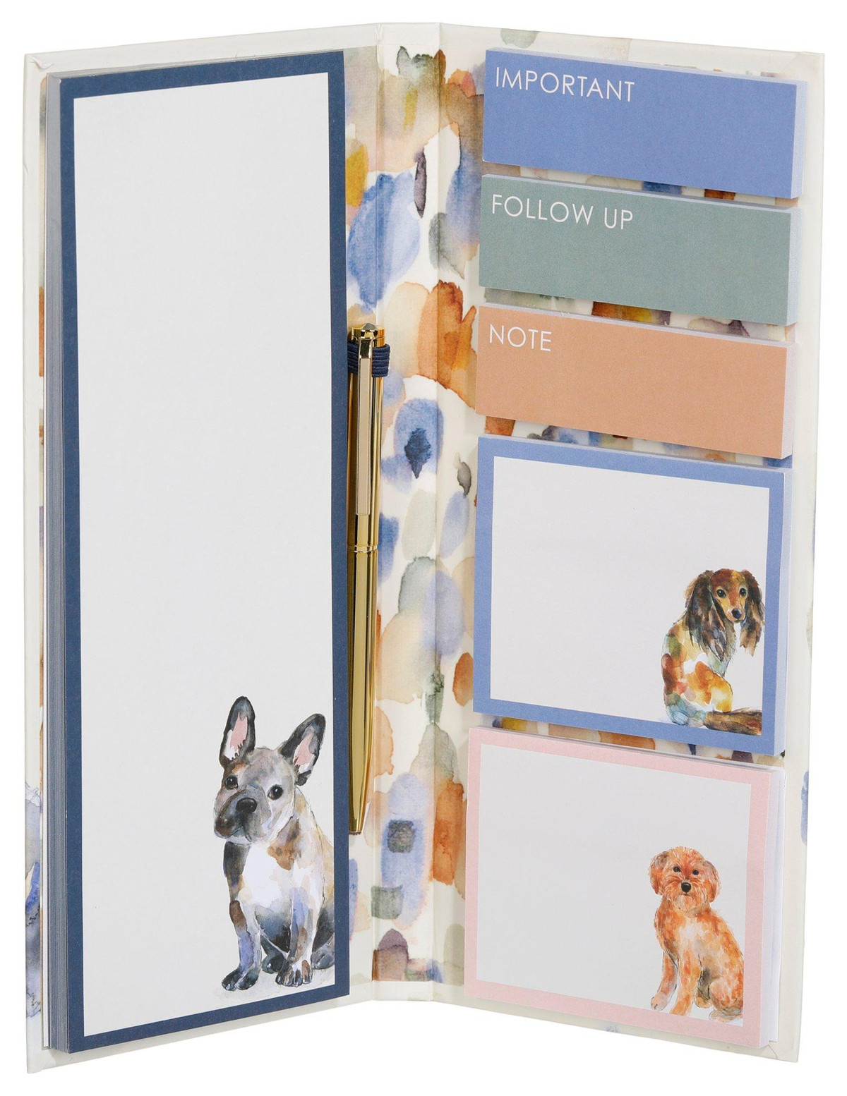 Introducing the Dog Notefolio Set, featuring a pen, a 40-sheet list pad, 2 sticky notepads, and 3 packs of sticky flags. Perfect for organizing your notes and reminders, this set combines practicality with a charming dog-themed design. Ideal for dog lovers and stationery enthusiasts!