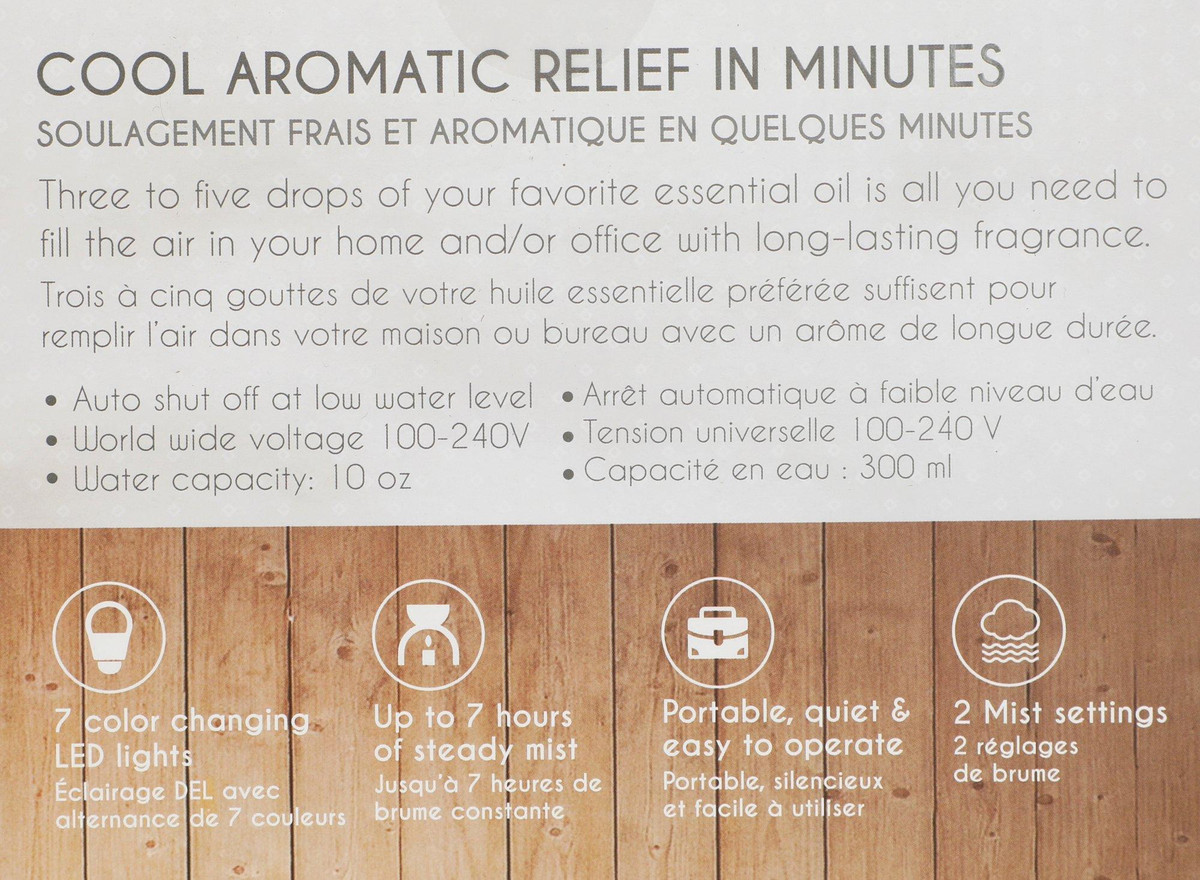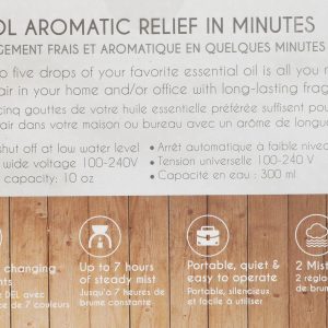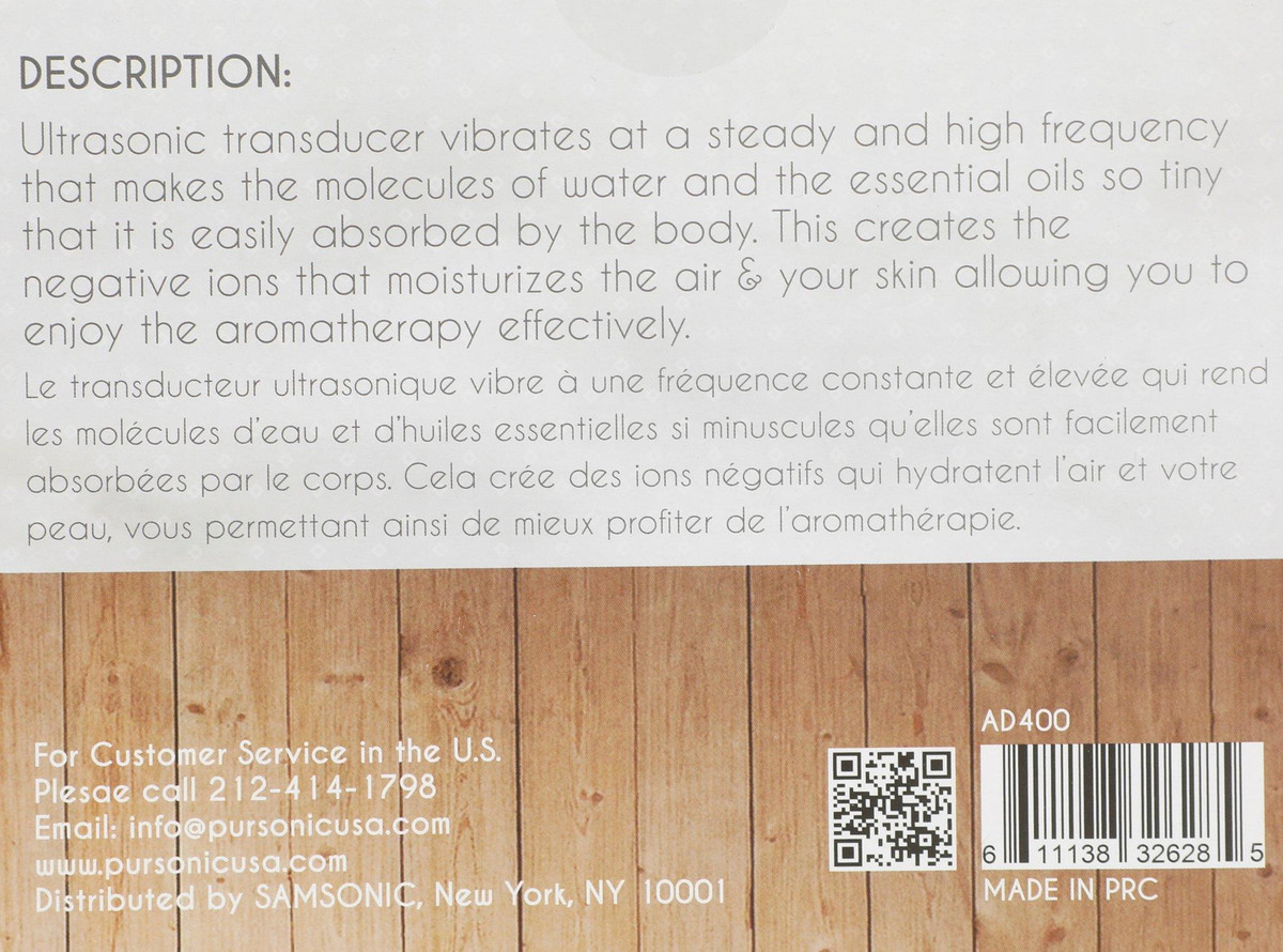 This luxurious diffuser is great for aromatherapy as well as enhancing your home décor. Ultrasonic transducer vibrates at a steady and high frequency that makes the molecules of water and the essential oils so tiny that it is easily absorbed by the body. This creates the negative ions that moisturizes the air and your skin allowing you to enjoy the aromatherapy effectively. Auto-Shutoff at low water.