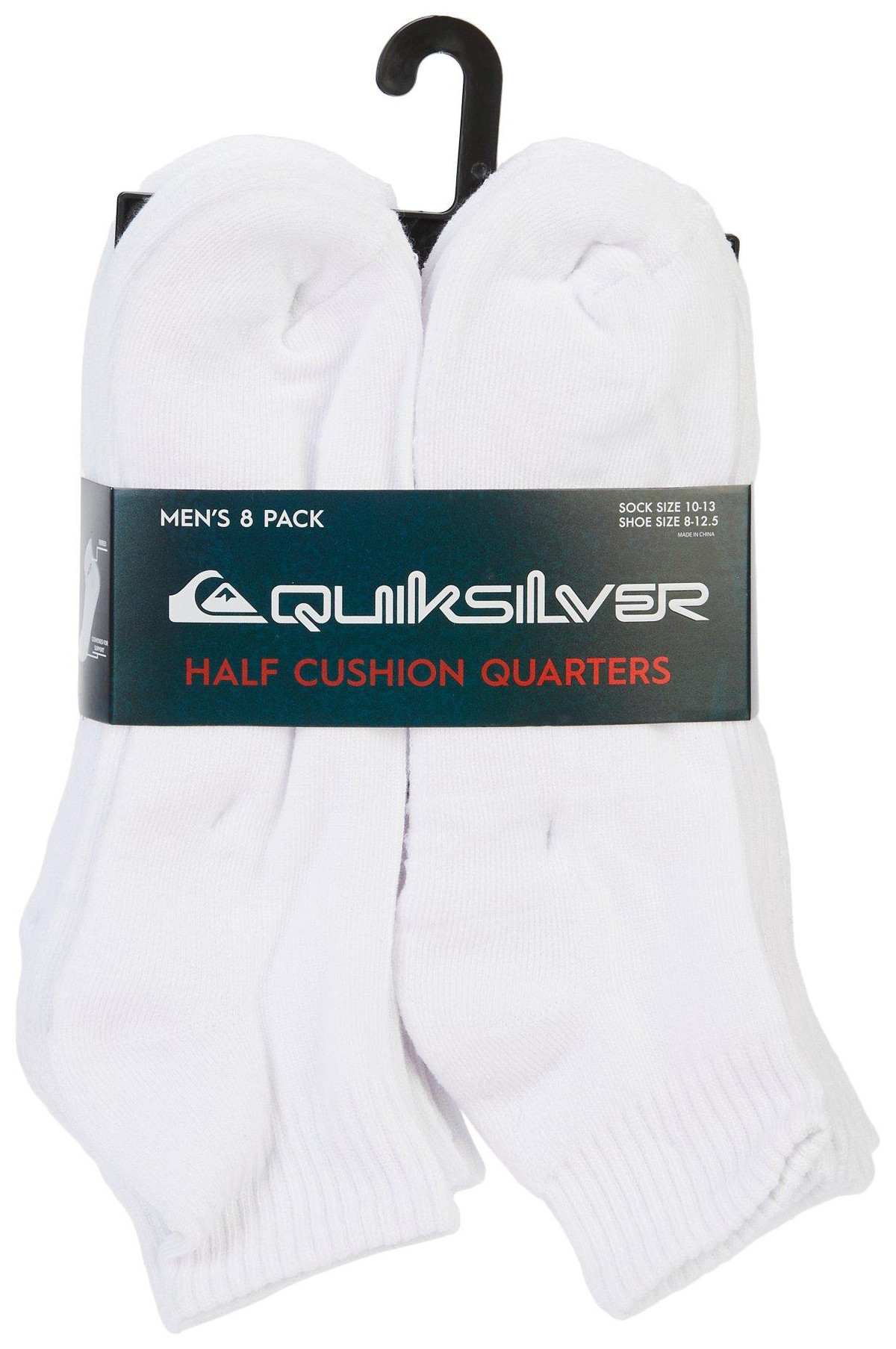 Lets be realyour socks should work as hard as you do. The Quiksilver Mens Half Cushion Quarter Socks 8-Pack fits shoe sizes 812.5 and delivers all-day comfort with a breathable polyester-spandex blend. Moisture-wicking, reinforced heel and toe, and just the right cushionthese socks are built to last. Eight pairs, zero excuses.
