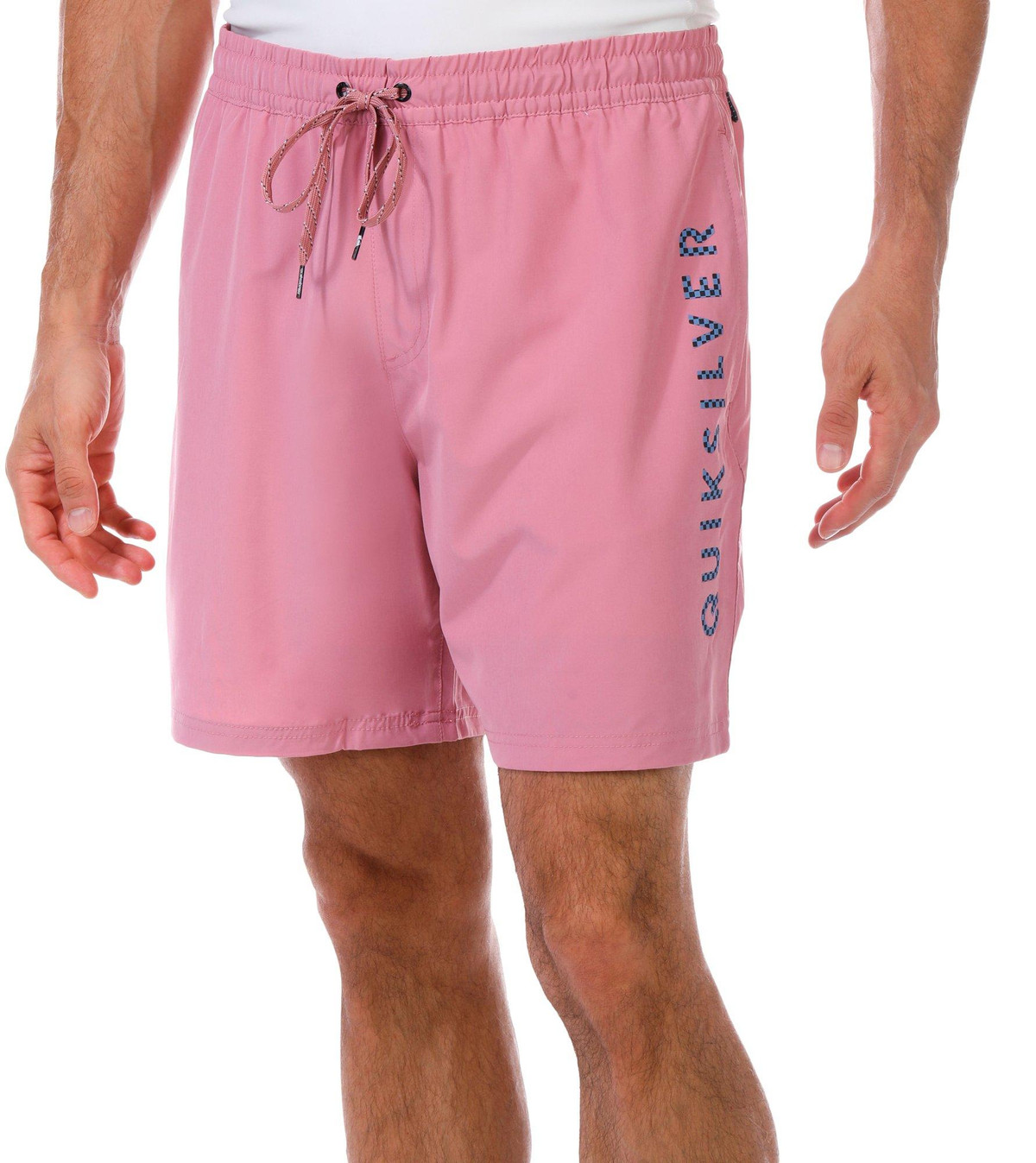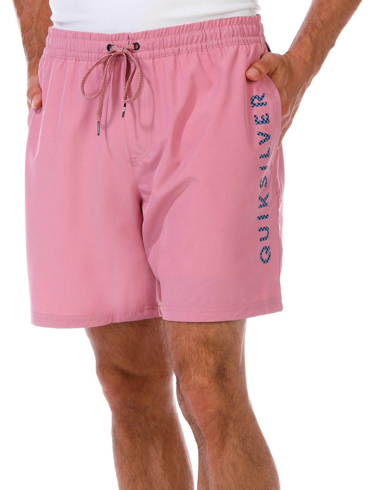 Keep it cool and casual with these Men’s Solid Logo Volley Shorts. Designed with a drawstring waistband, side seam pockets, a back pocket, and bold brand script on the left leg, they are perfect for beach days or laid-back weekends. Fabrication 90% polyester, 10% spandex