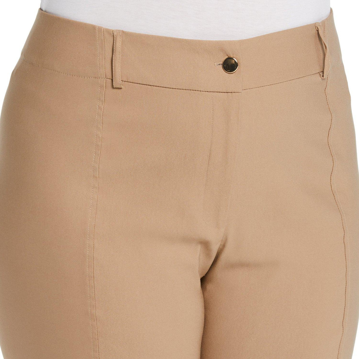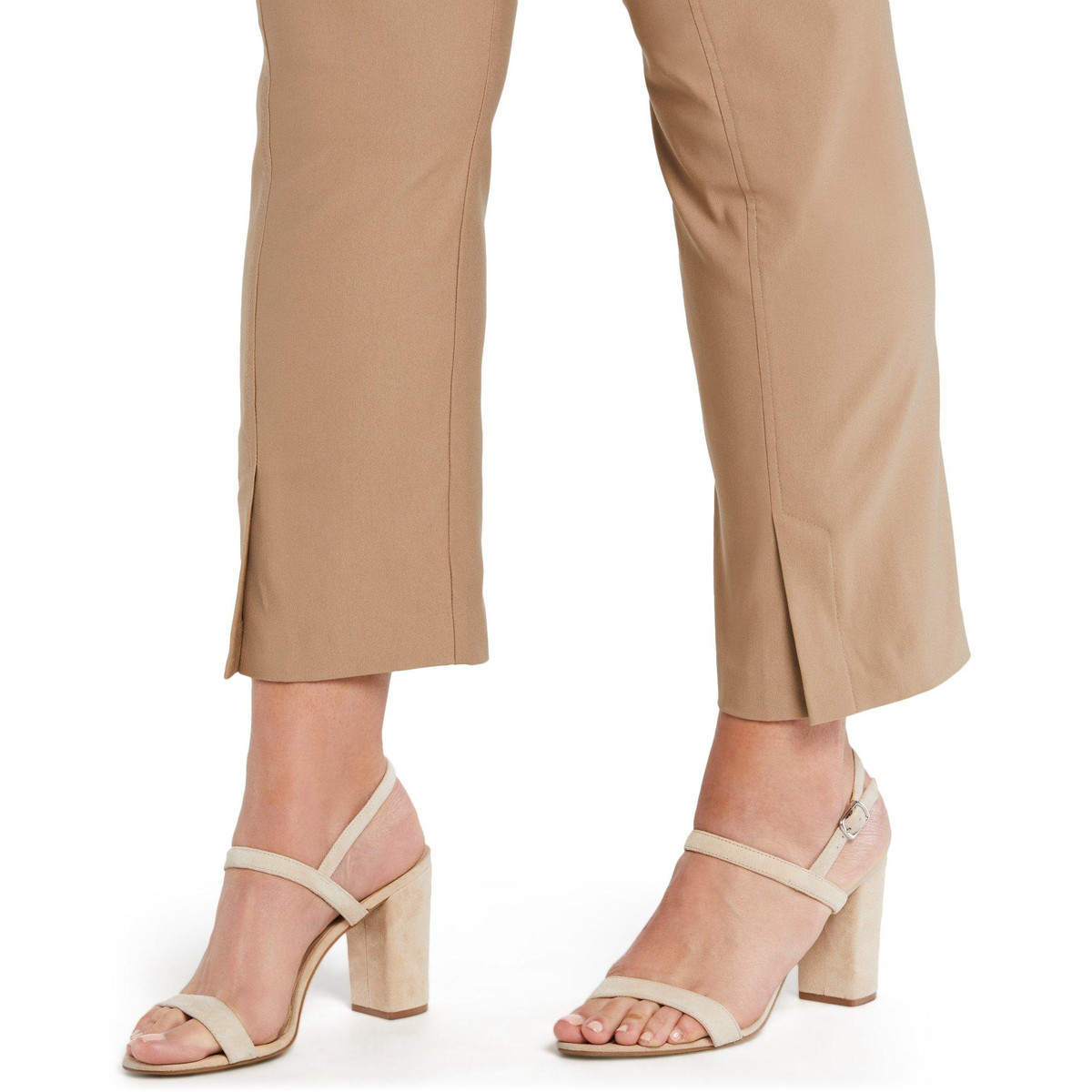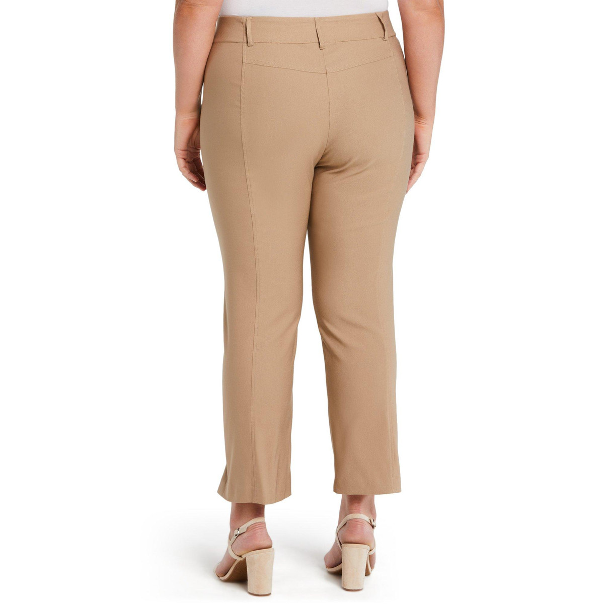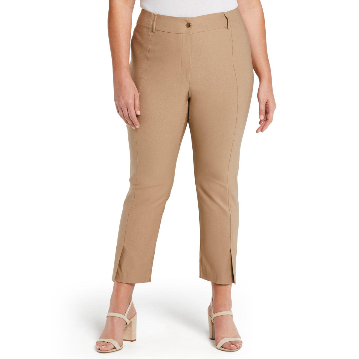 Elevate your style with these Seamed Pants. Featuring a solid color and button closure, they offer a sleek and polished look. The split ankle hem adds a modern twist, making them perfect for both professional and casual settings. These pants provide a flattering fit and versatile appeal, ensuring you step out with confidence and sophistication. Fabrication is 76% viscose, 21% nylon, 3% elastane.