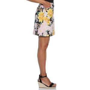 Our Womens Floral Print Skort features a floral print design on easy care comfort stretch fabric, a hidden elastic waist, and a classic styling. Measures approximately 19 inches in length, inseam 3.5 in. Fabrication 75% rayon, 22% nylon, 3% spandex.