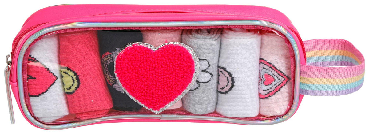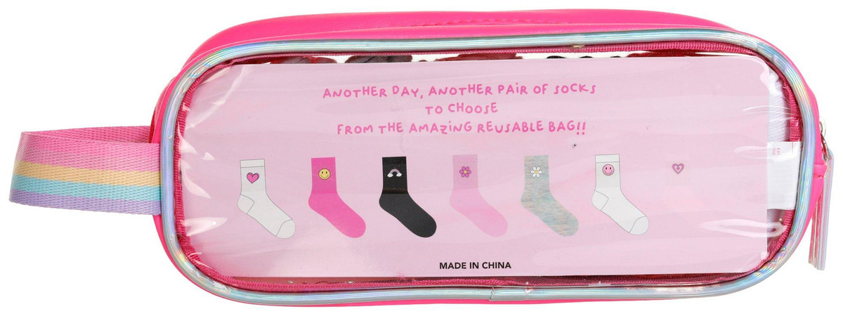 Keep your feet cozy and stylish with the Girls 7 Pc Socks Set. This set includes 6 pairs of mid crew socks made from a soft blend of polyester and spandex, ensuring comfort and durability. The assorted colors add a fun touch to any outfit. The set also features a reusable zip-up case, perfect for keeping your socks organized and easy to find. Designed to fit girls’ shoe sizes, this set is ideal for everyday wear and offers a practical and stylish solution for your sock needs.