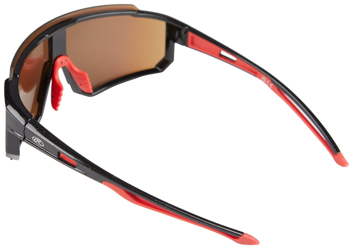 These sunglasses have a frameless design to provide a wide field of vision. They also include an adjustable nose bar for a comfortable fit. The lenses are designed to repel dirt, water, and oil, ensuring clear vision in various conditions. The frame is made with 100% recycled plastic, making them durable and lightweight. They feature a multilayer mirror lens with 100% UVA-UVB protection and are both impact and scratch-resistant. A hydrophobic coating helps repel water for easier cleaning.