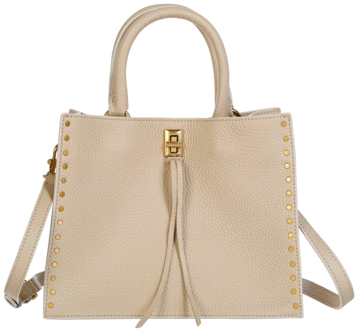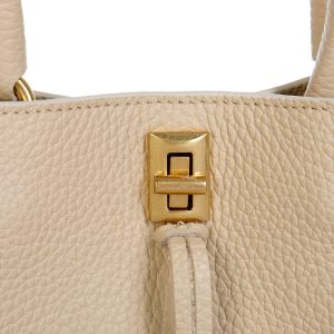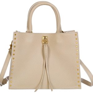 Refine your accessories collection with this Darren Small Tote Handbag in Stone. Made from pebble leather in a versatile stone shade, it features a front pouch pocket for added convenience and a sleek, compact silhouette for everyday use. Perfect for workdays or city outings. Wipe clean with a dry cloth. Measures approximately 10 in x 8 in x 5 in.