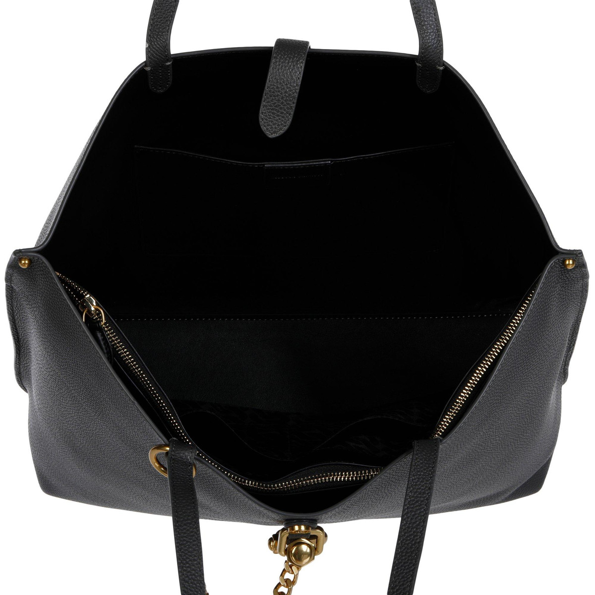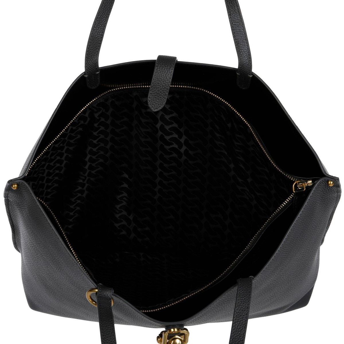 Streamline your essentials with this Megan Large Tote Handbag in Shadow. Designed in durable pebble leather, it features a spacious interior with a center zipper pocket and two large slide in compartments for organized storage. Ideal for work, travel, or daily use. Wipe clean with a dry cloth. Measures approximately 20 in x 13 in x 6 in.