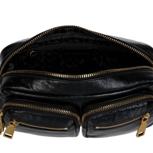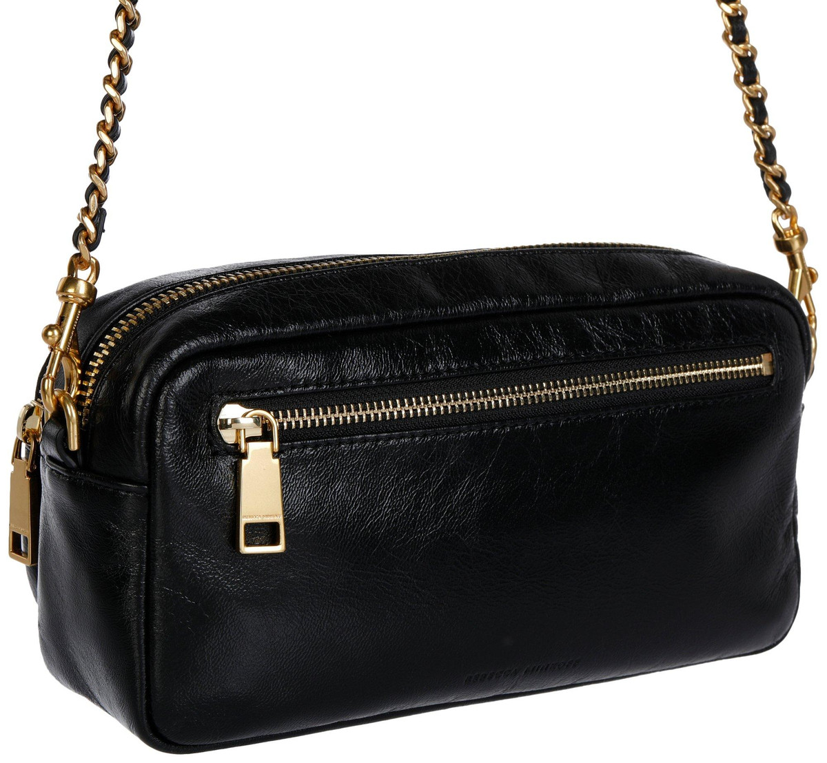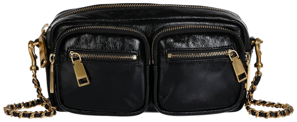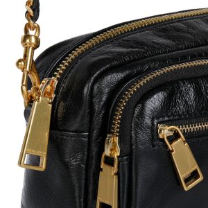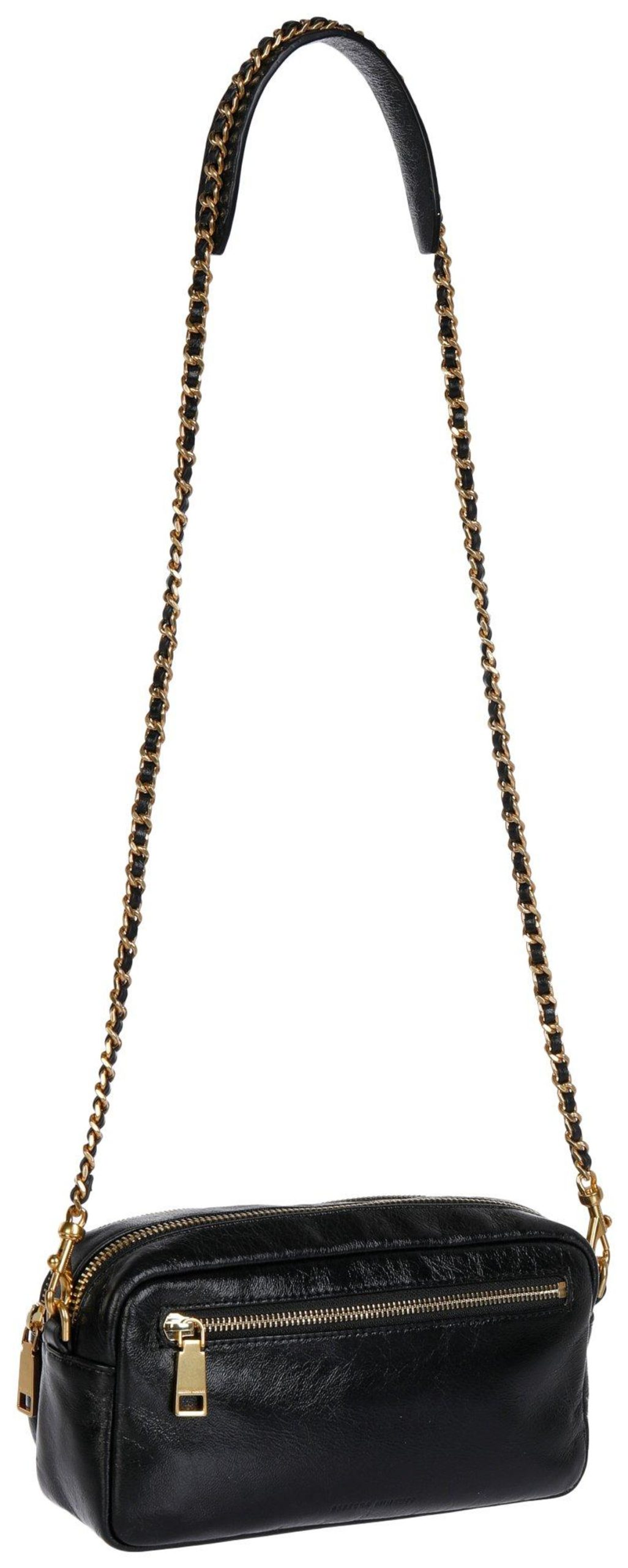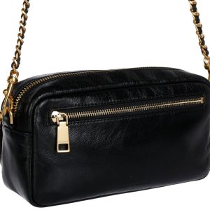 Discover this compact crossbody bag, a perfect blend of style and functionality for the modern woman. This luxurious leather handbag, with its streamlined silhouette and gold tone hardware, features a detachable crossbody chain strap, 2 exterior zip pockets, top zip compartment with inner zip pocket, and 1 exterior zip pocket. Measures 9 in x 2.5 in x 5 in