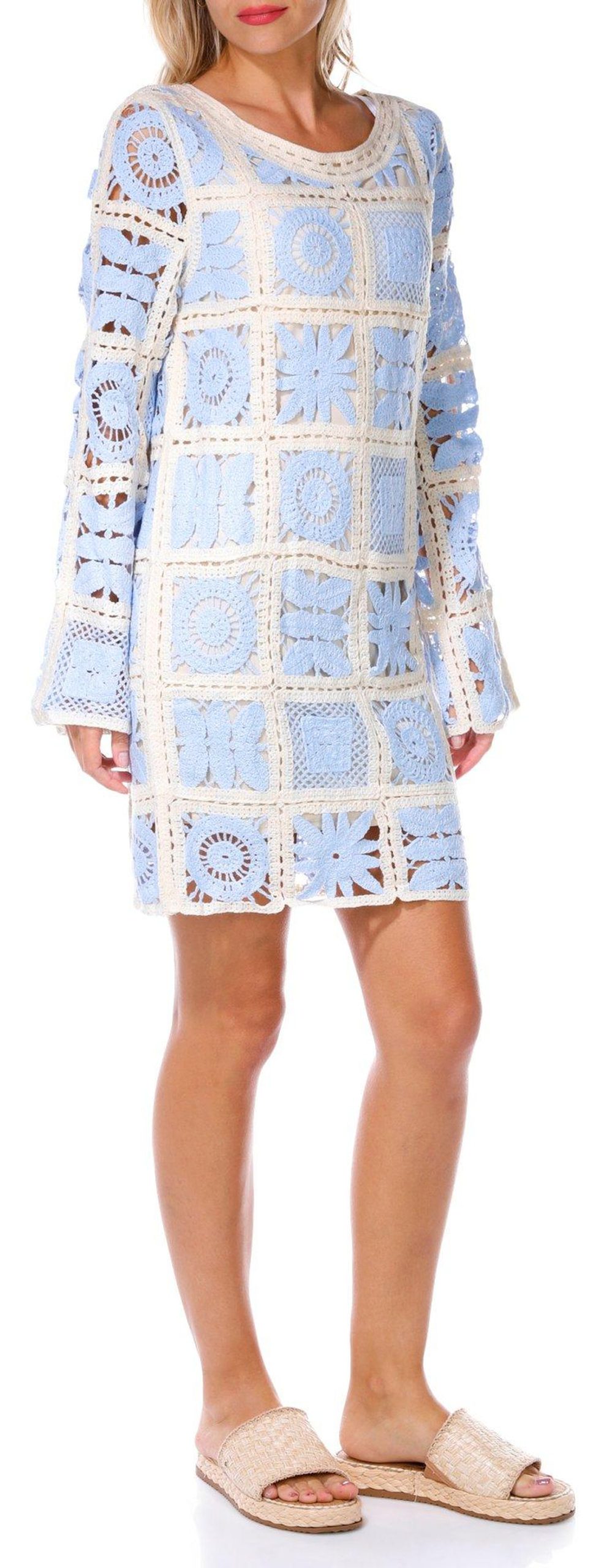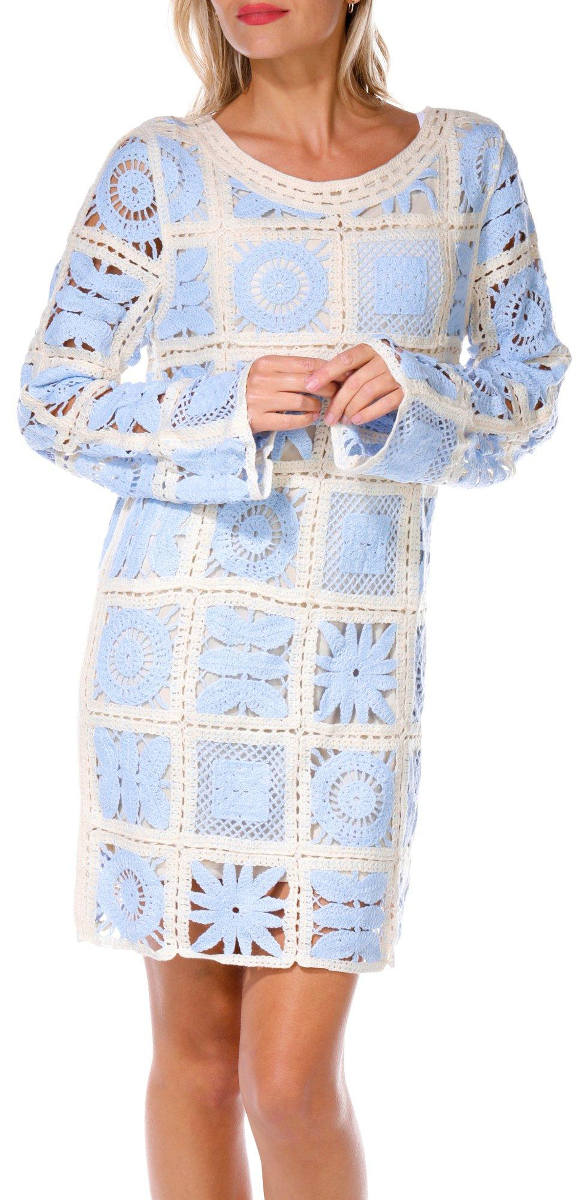 Rebellion Juniors Long Sleeve Crochet Dress