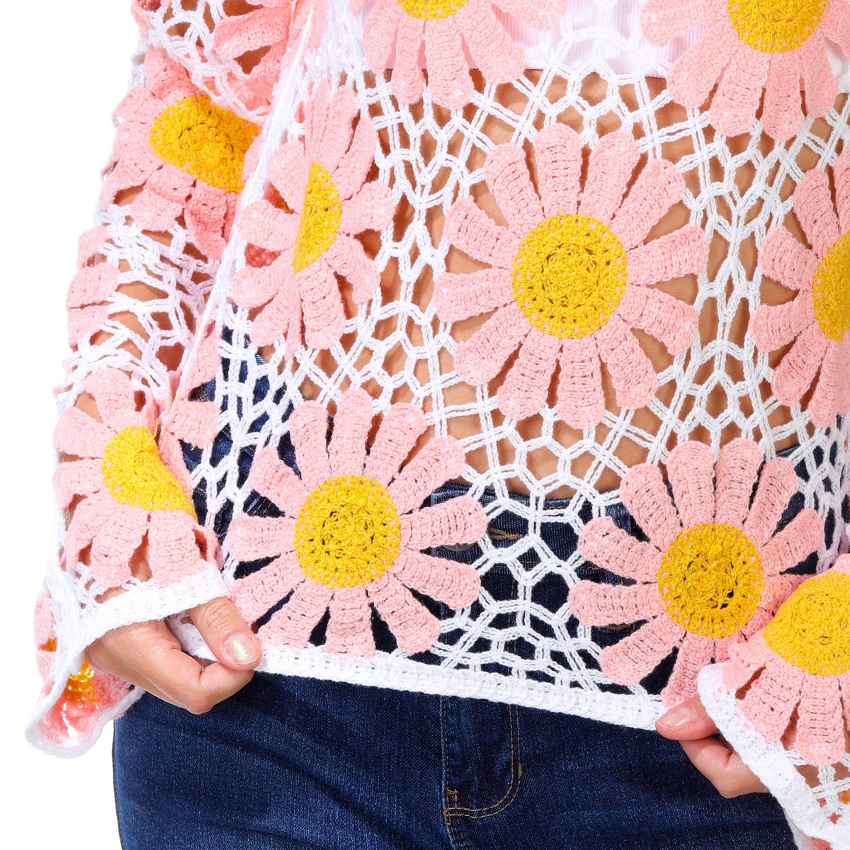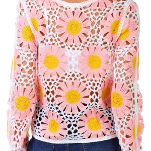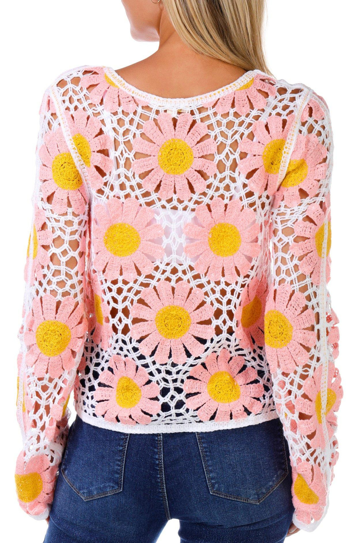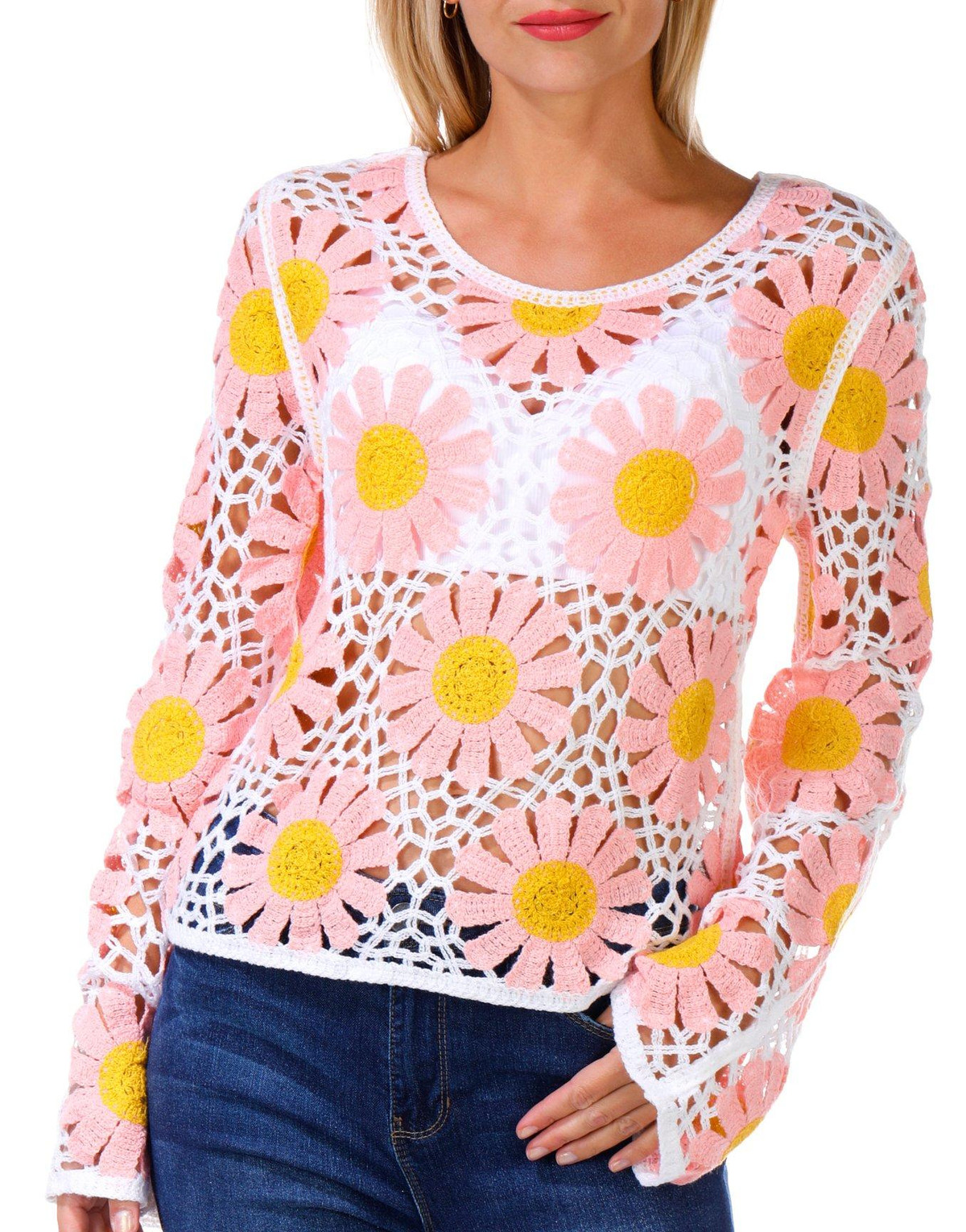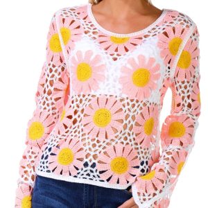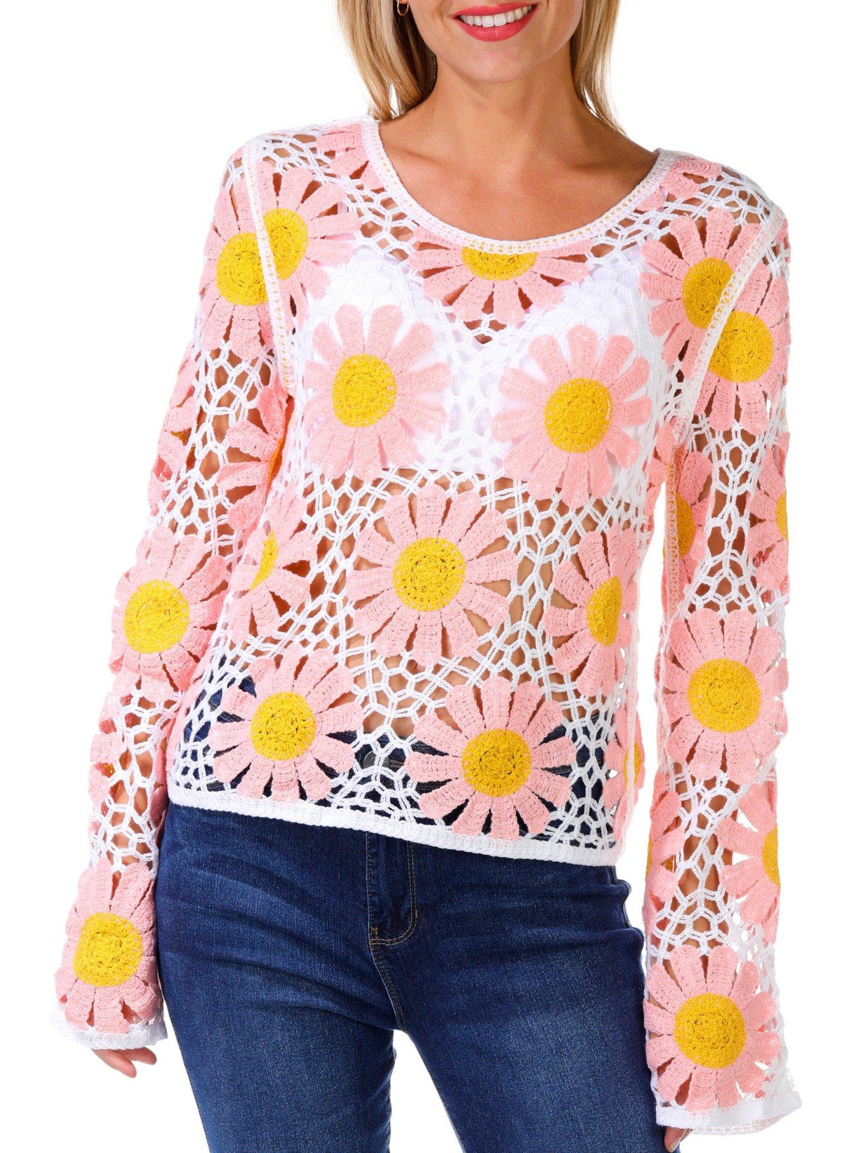 Rebellion Juniors Long Sleeve Daisy Crochet Top