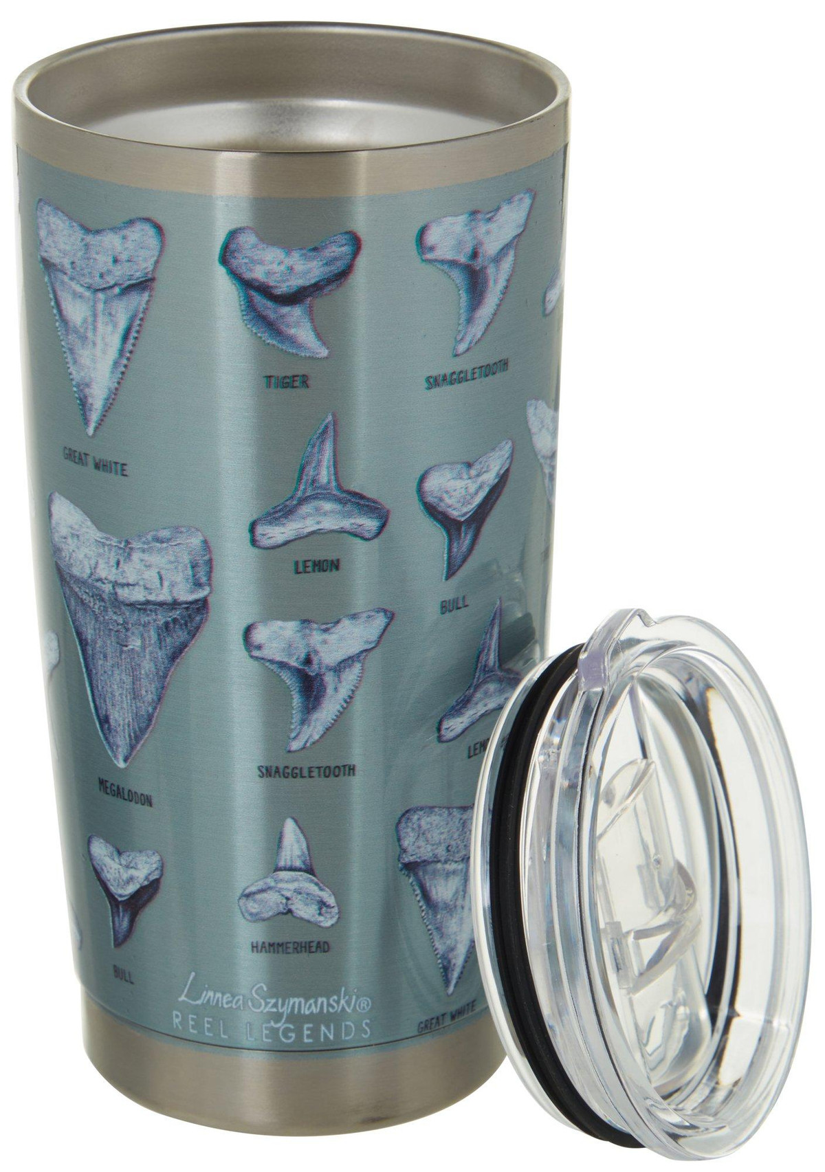Reel Legends creates high quality & innovative drinkware that makes a creatively special gift. This travel tumbler keeps drinks hot or cold longer, reduces condensation, and features a Linnea Szymanski’s Chomp artwork design. Spill-proof lid included. Holds 20 oz.
