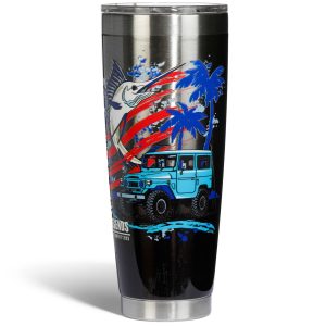 Celebrate in style with this Americana-themed stainless steel tumbler! Designed with double-wall insulation to keep drinks hot or cold for hours, this BPA-free tumbler features a sweat-free exterior and a secure lid for on-the-go convenience. With bold patriotic prints and durable construction, its the perfect companion for summer adventures, road trips, or backyard BBQs. Capacity is 30 FL. OZ.