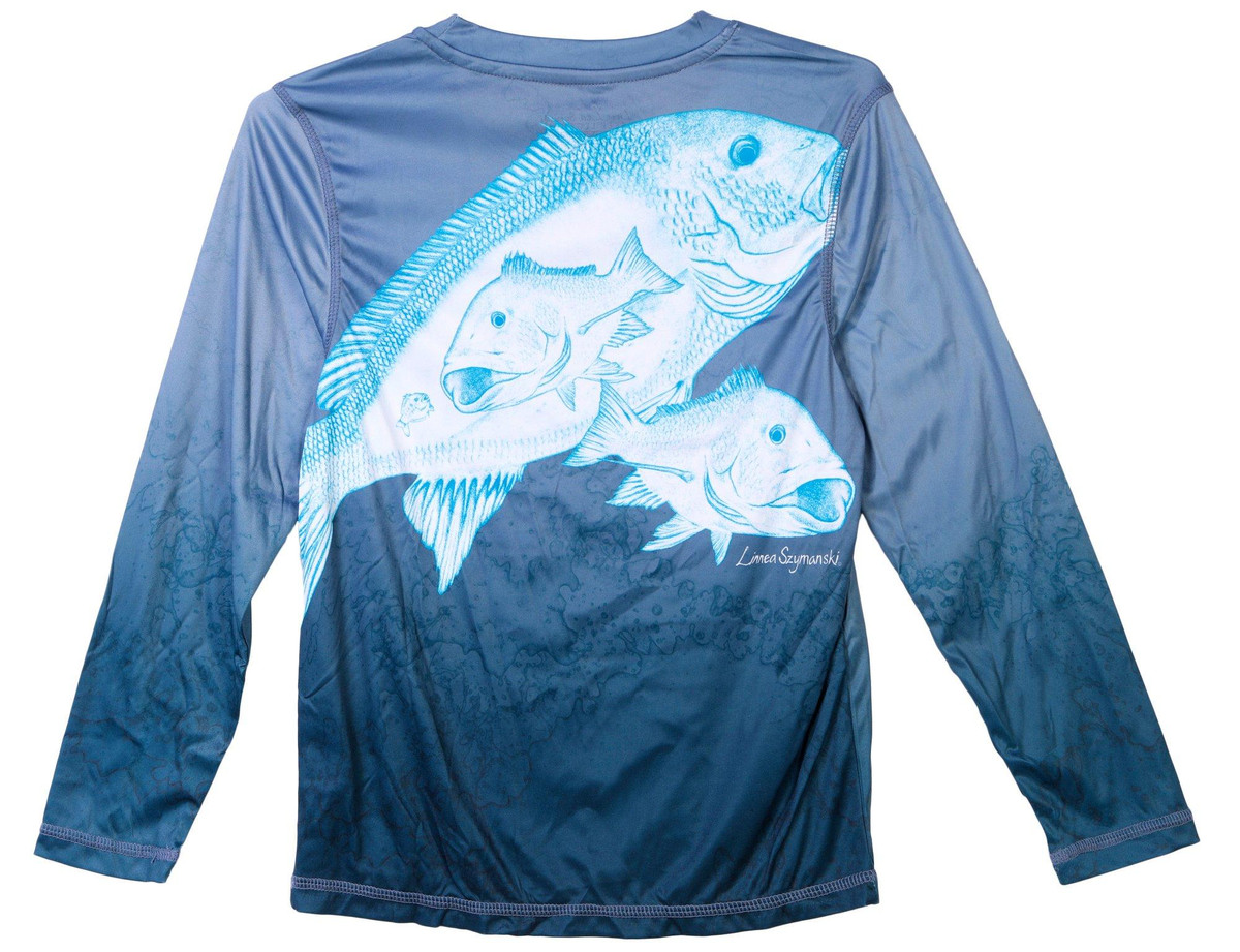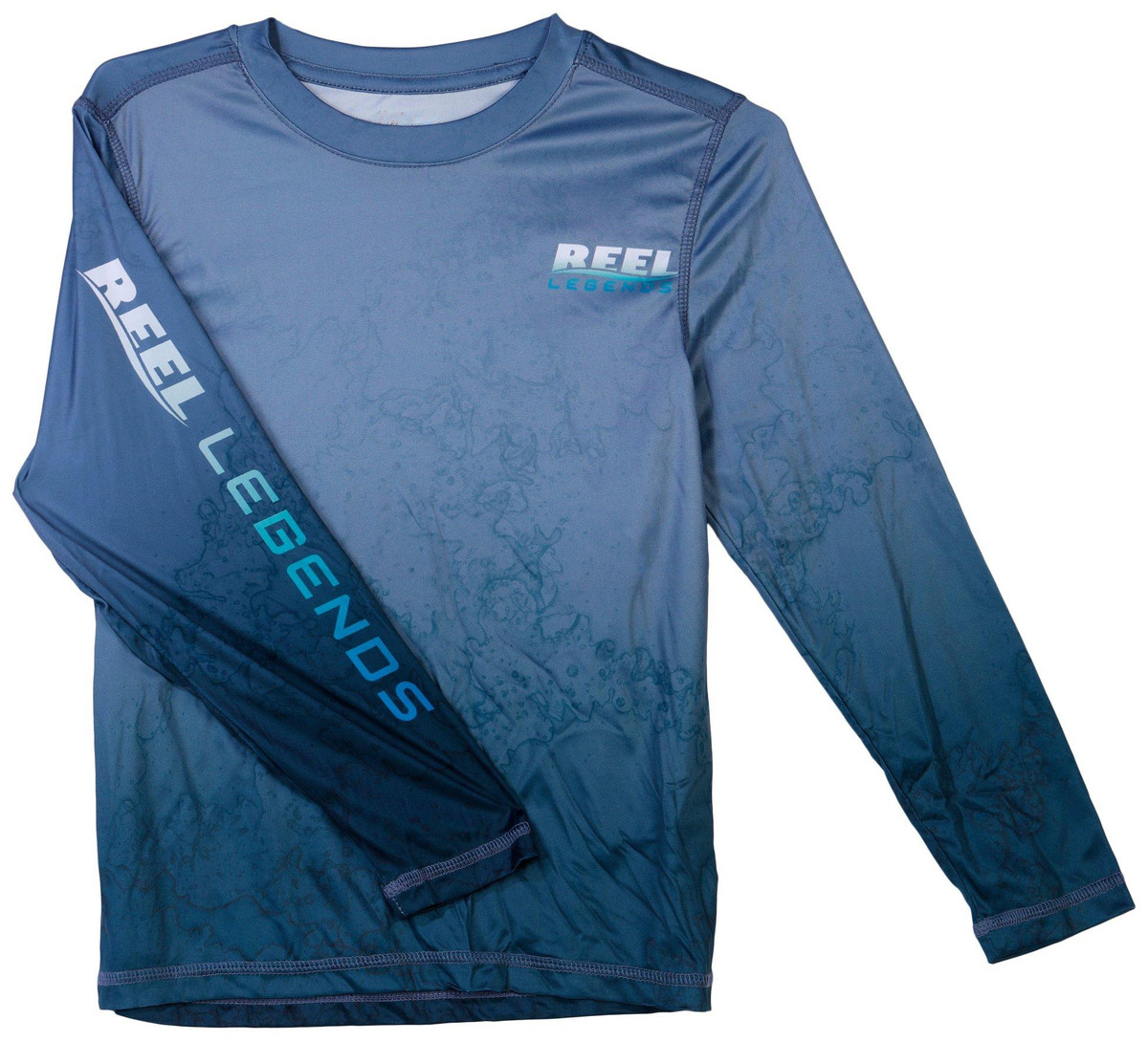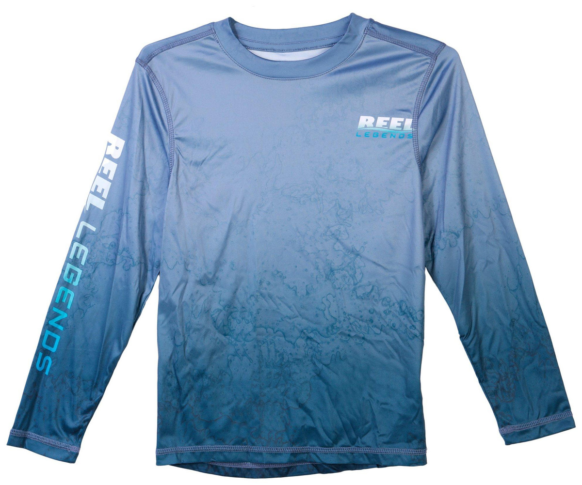 The Big Boys Long Sleeve Ombre Reel Tec Shirt by Reel Legends is made from 100% polyester and packed with tech. It offers UPF 50 sun protection, moisture wicking, quick dry comfort, sweat activated cooling, and performance stretch. With a bold ombre design, chest branding, and shark tooth print on the back, it’s built for style and adventure.