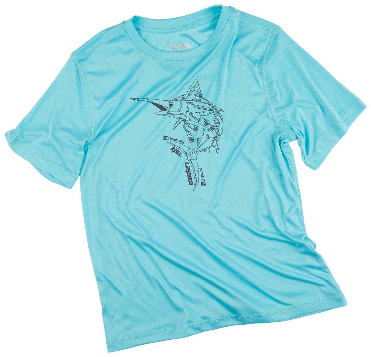 Perfect for land or sea, this t-shirt features moisture-wicking technology, quick-dry properties, and UPF 50 sun protection. The stylish front screen print and classic crew neckline combine functionality with fashion. The high-performance fabric is recommended as an effective UV protectant for covered areas. Gear up with Reel Legends and conquer your next journey with confidence! Fabrication is 100% polyester.