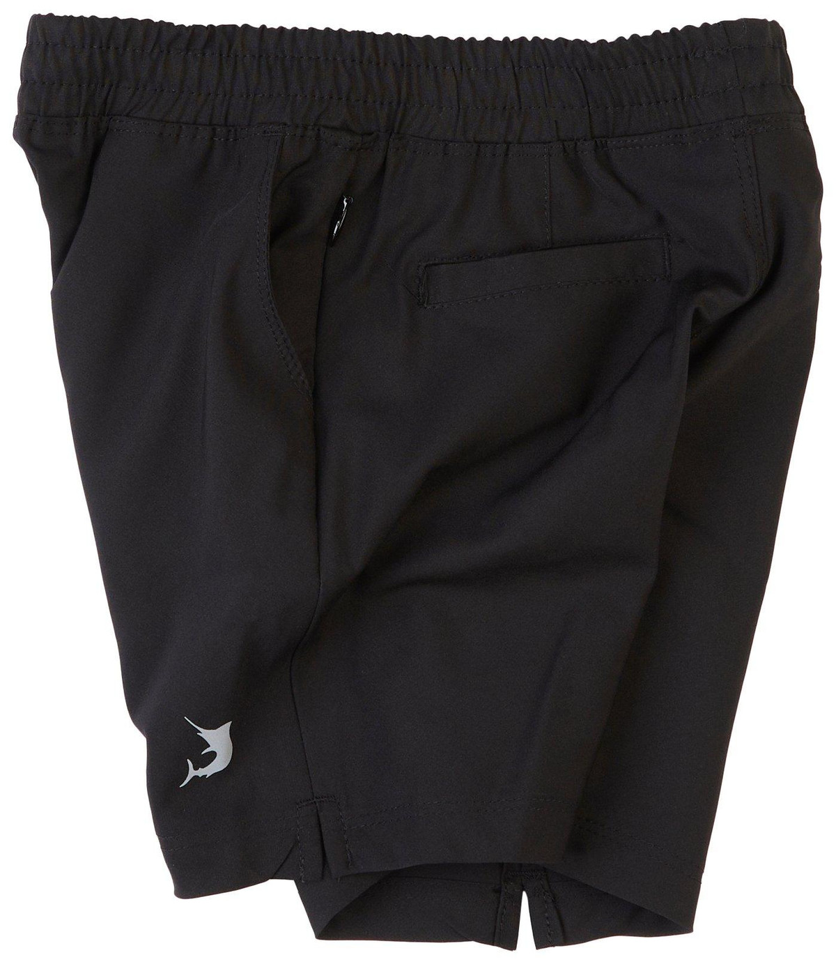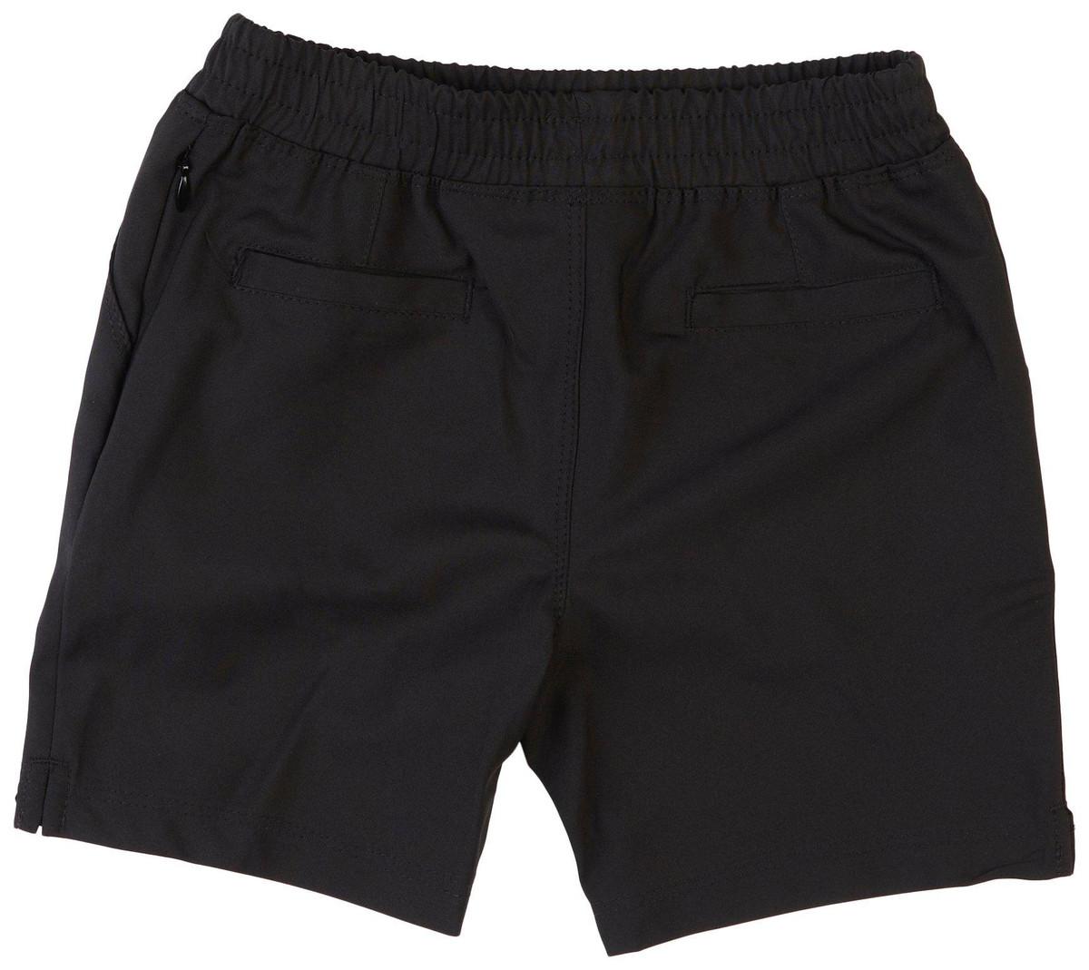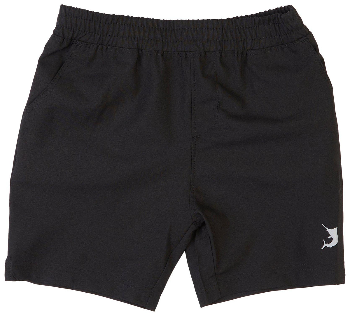 Little Boys swim trunks in solid black offer comfort and style with two front and back pockets. Made with stretch fabric for easy movement, they provide UPF 30 sun protection for outdoor fun. Perfect for active days in the water.
