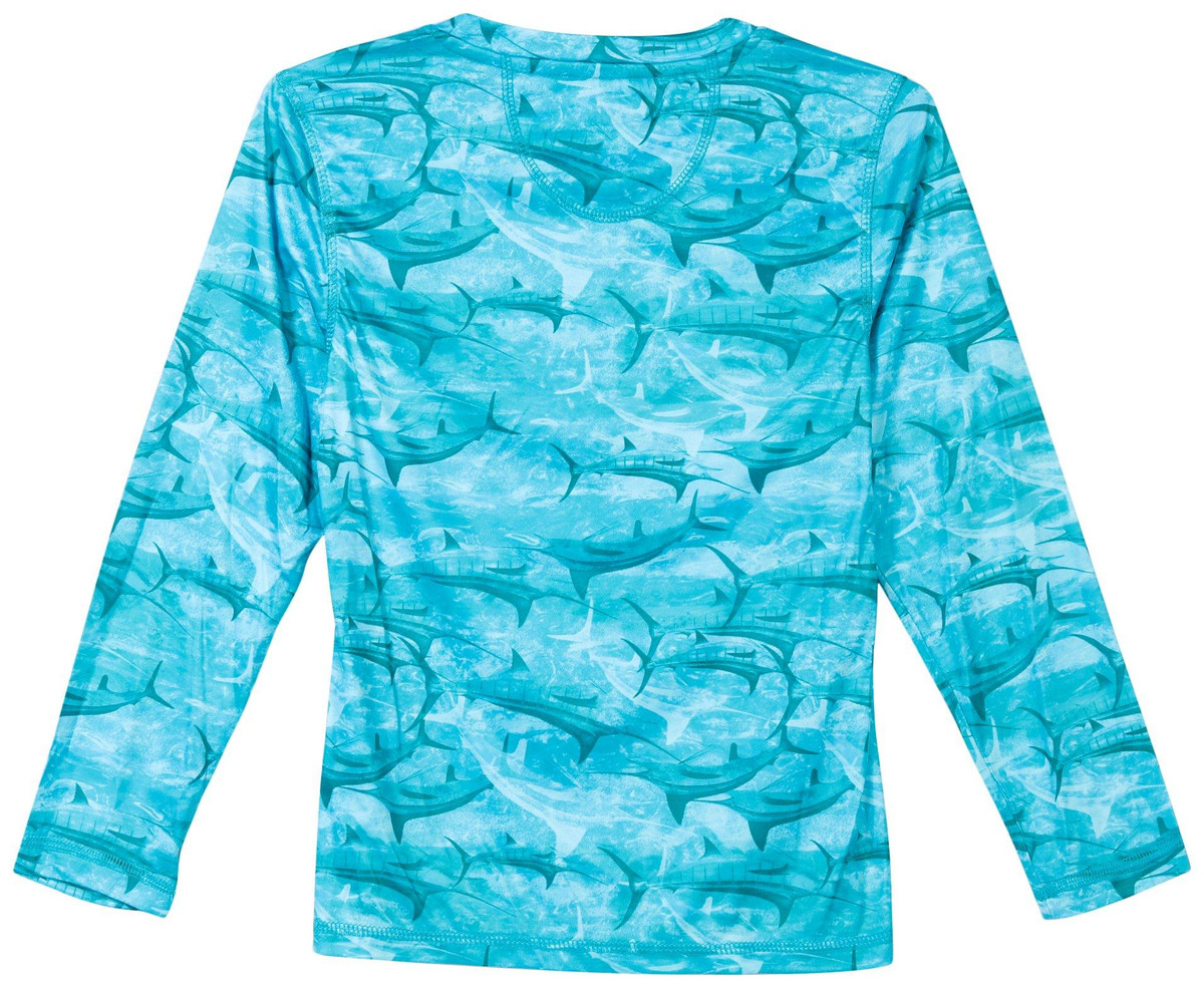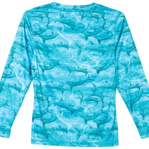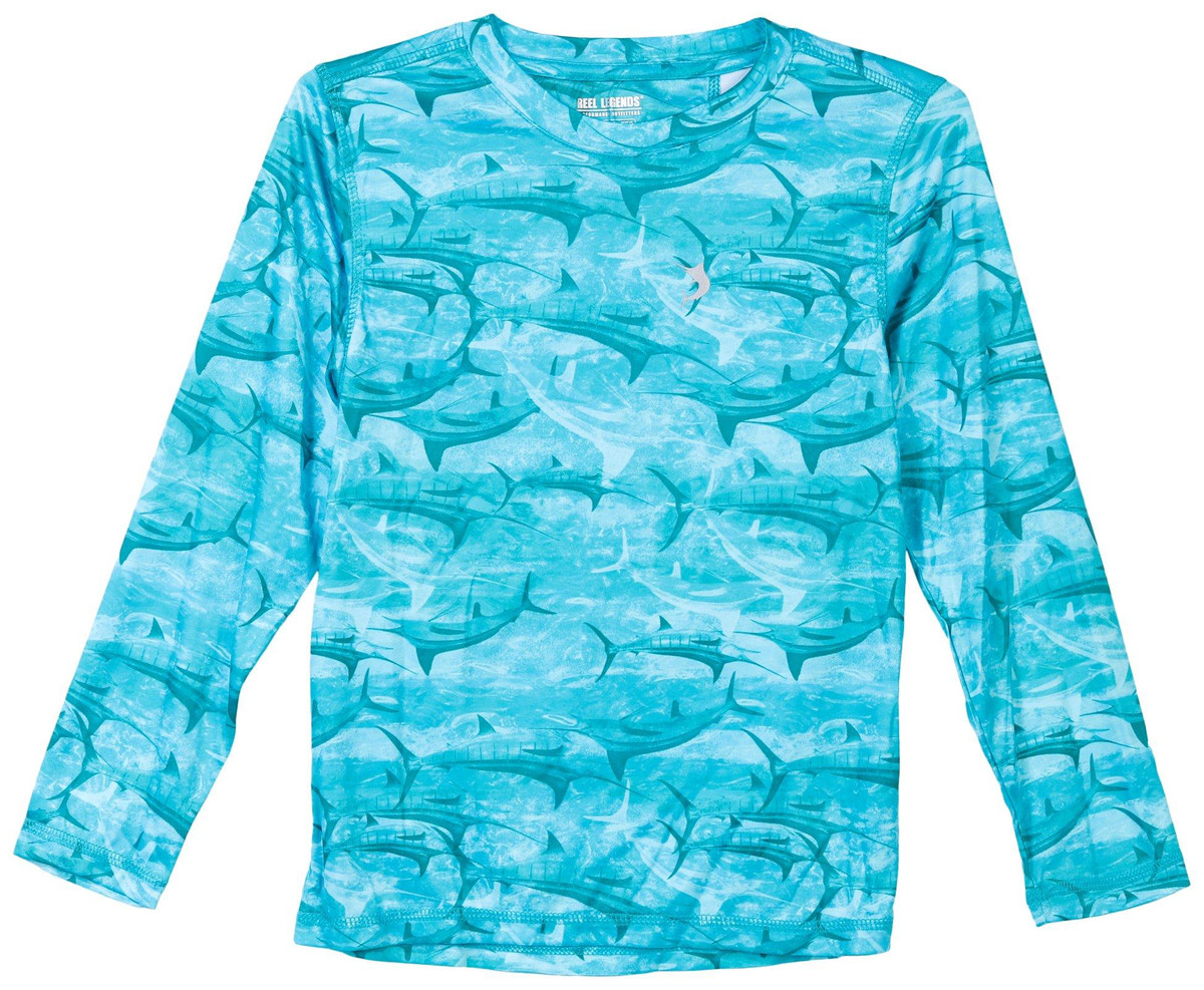 The Little Boys Long Sleeve Reel Tec Shirt by Reel Legends is made from 100% polyester and packed with performance tech. It offers UPF 50 sun protection, moisture wicking, quick dry comfort, sweat activated cooling, and performance stretch. Featuring a bold shark pattern and chest branding, it’s perfect for active days on land or sea.